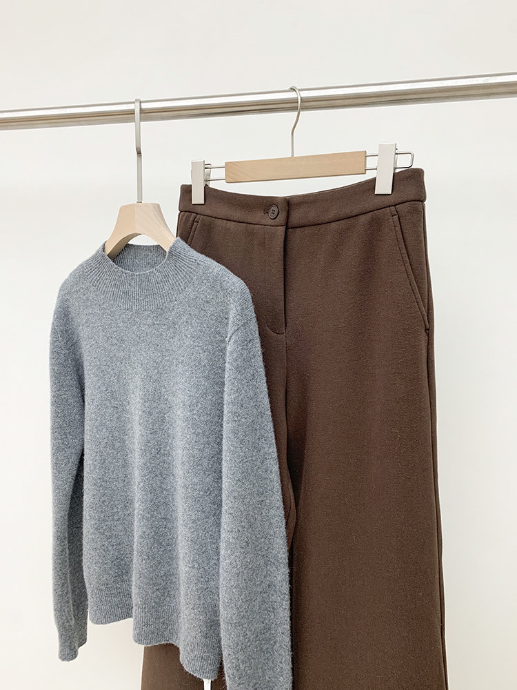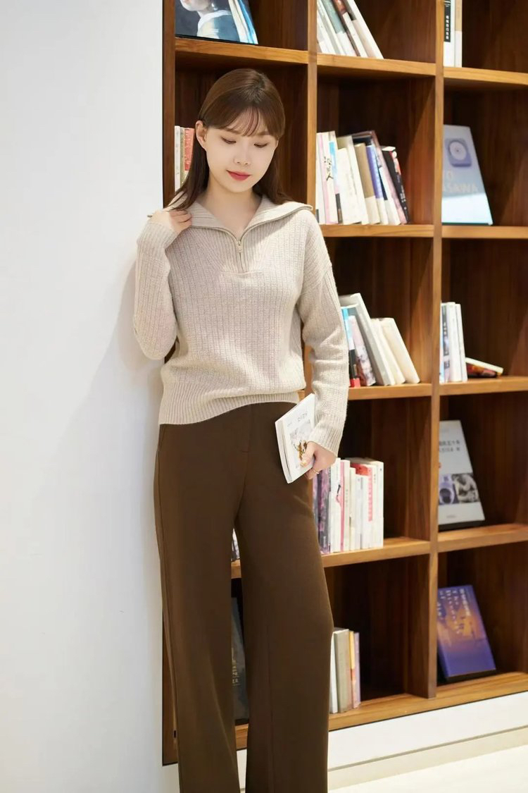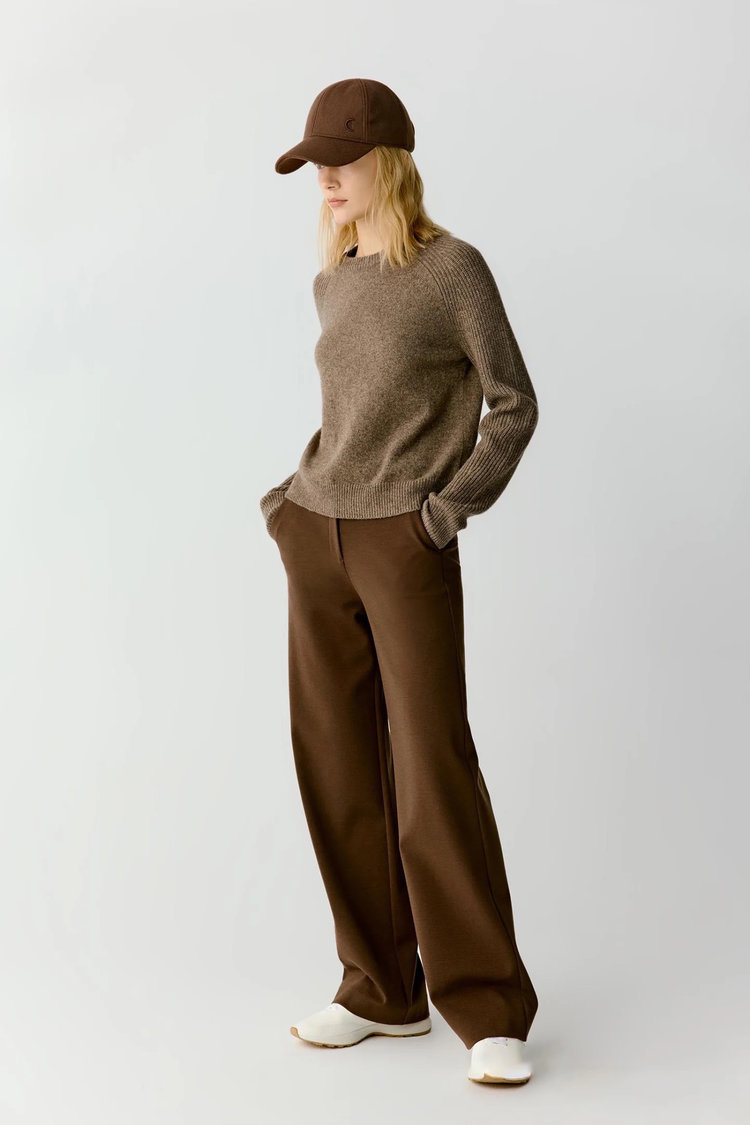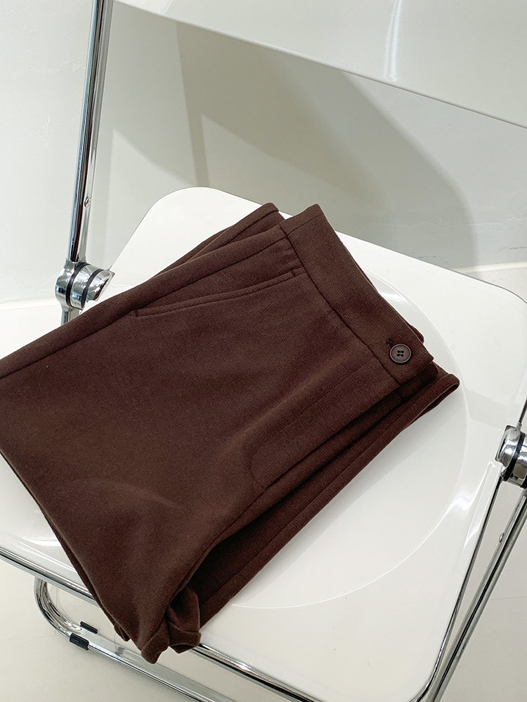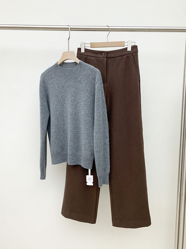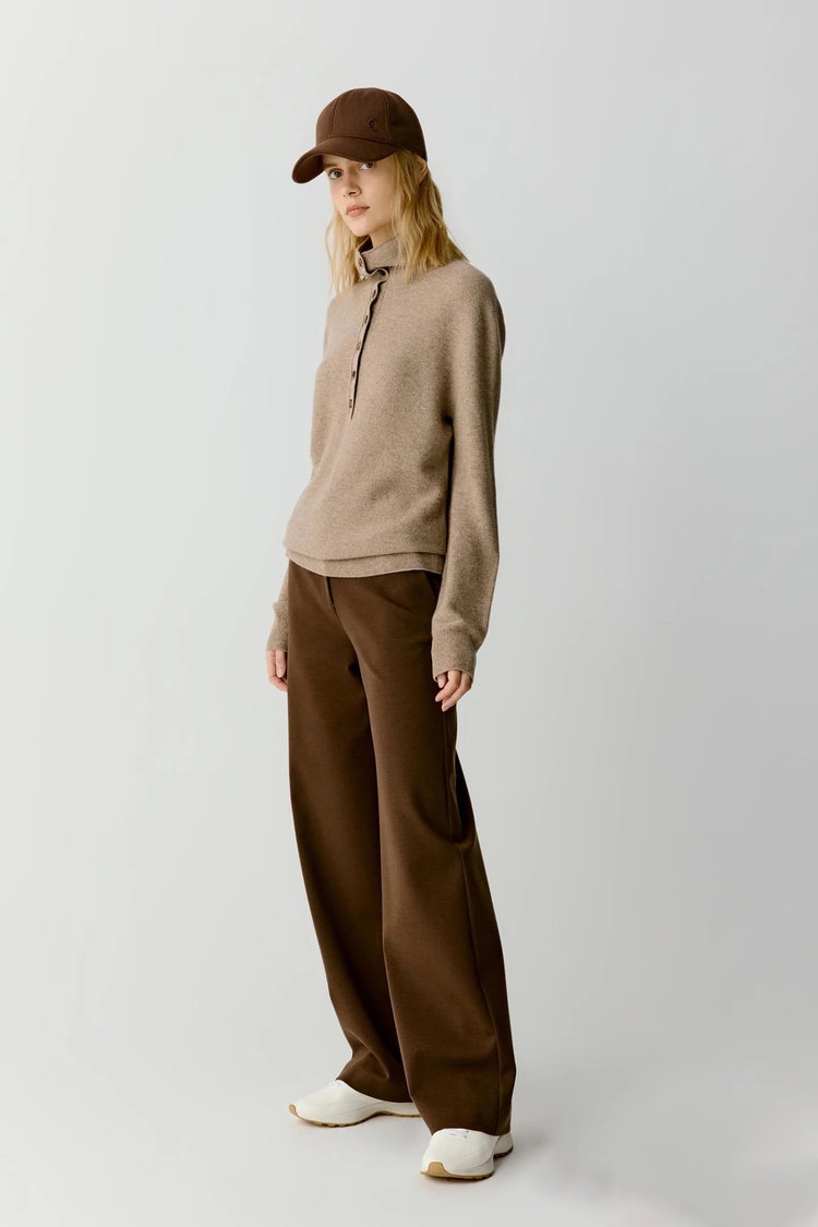 【爆款裤王】针织简约阔腿裤 羊毛混纺针织布直筒裤 炙热咖色 高腰设计 拉长腿部线条 打造松弛穿搭 高腰廓形 宽而不肥