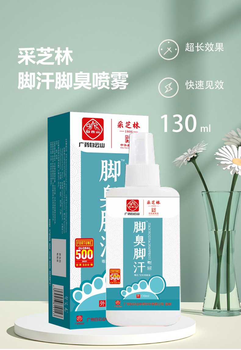 【让脚不再受“气”!白云山】采芝林脚臭脚汗喷剂,脚足部护理液喷雾剂,脱皮水泡汗脚痒脚臭鞋臭喷雾,防足裂健康足部,可喷鞋织物喷雾
