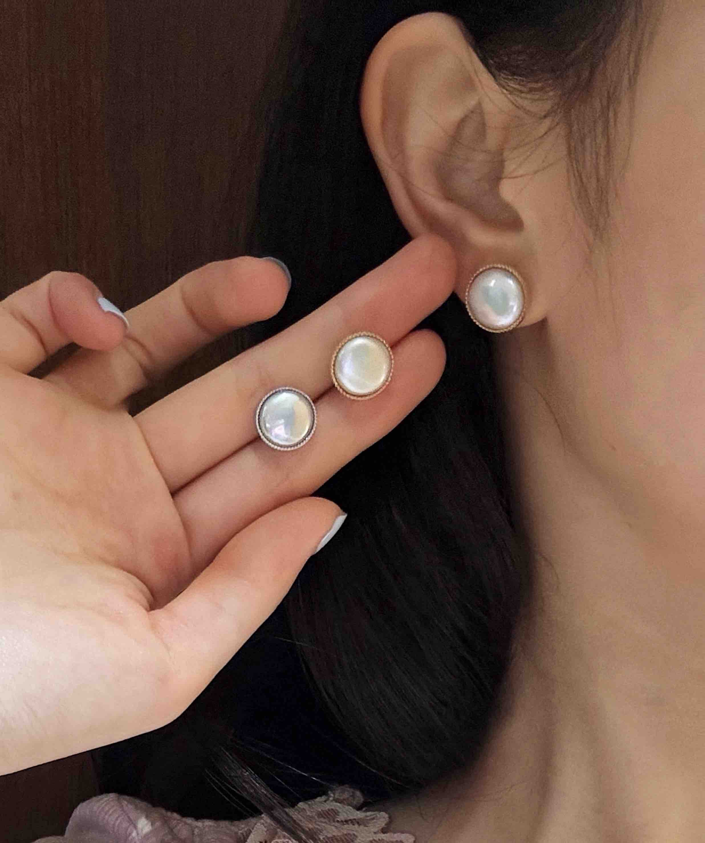 RETRO系列 18K镶异形淡水珍珠耳钉