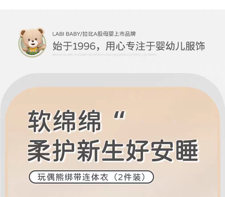 【春上新】8楼拉比 拉比童装连体衣男女童四季绑带连体衣2件装 吊牌价:198