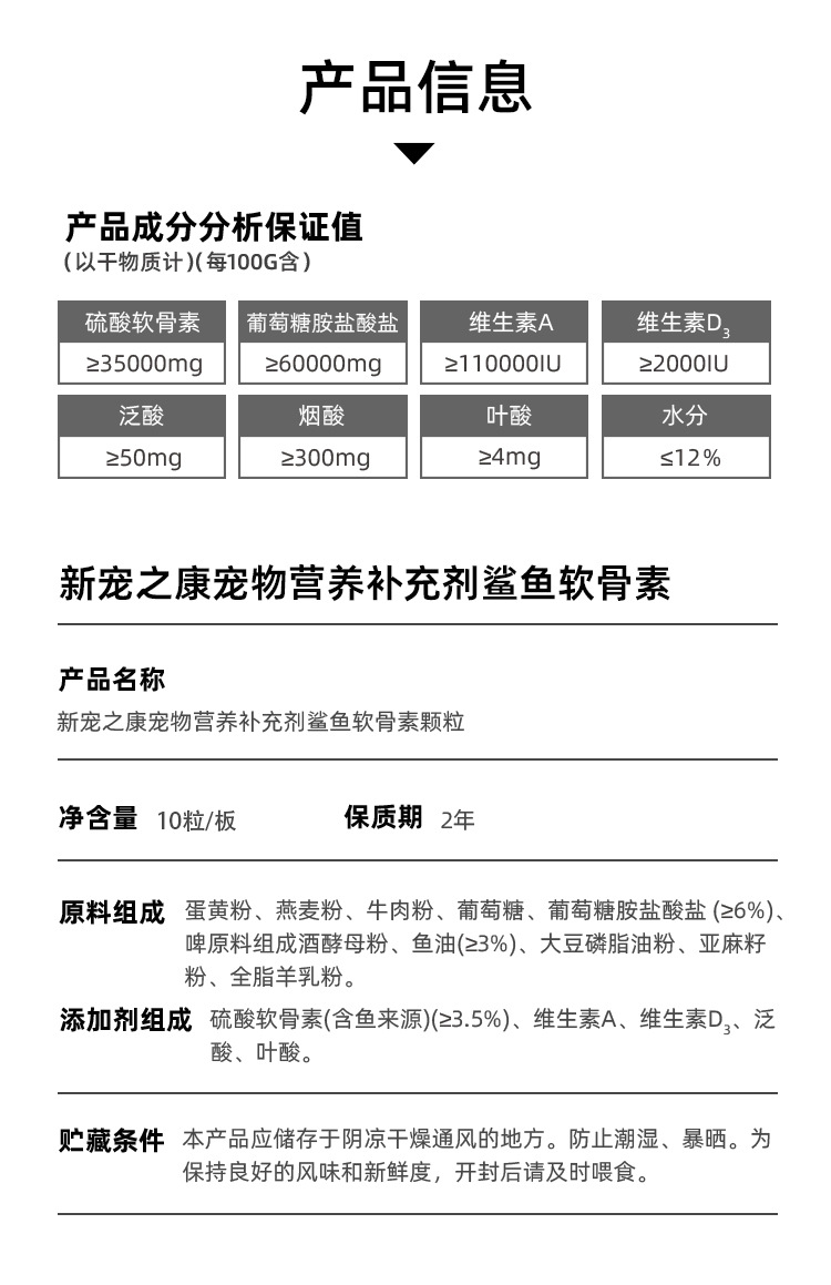 新宠之康 鲨鱼软骨素狗狗猫咪宠物专用关节补钙营养补充剂10粒
