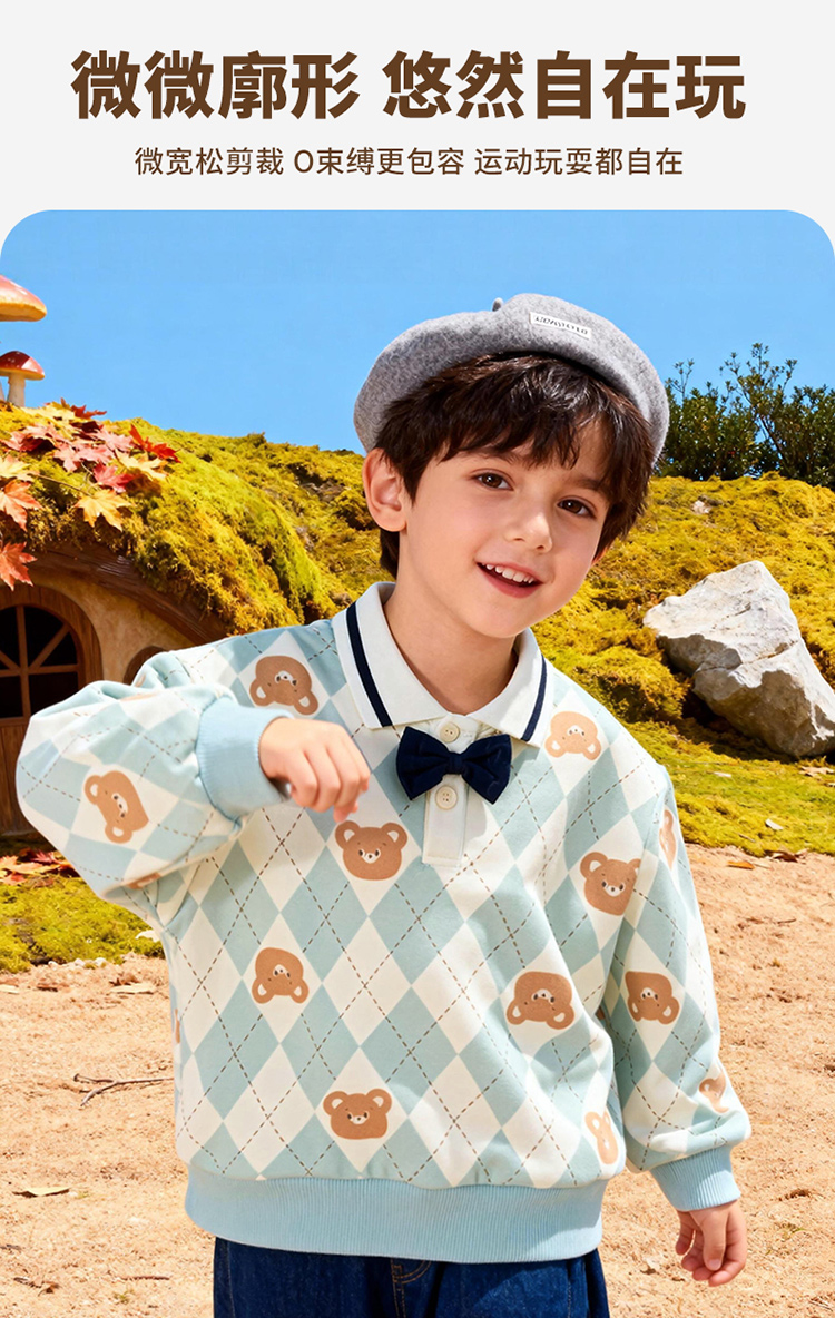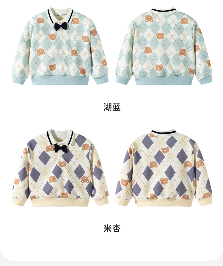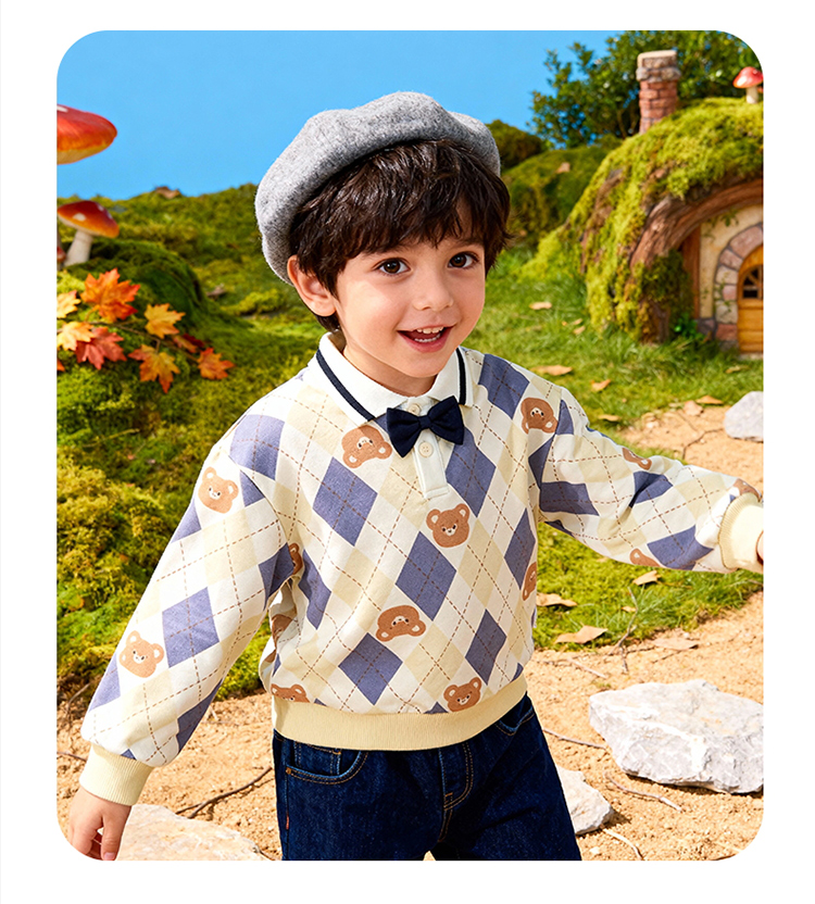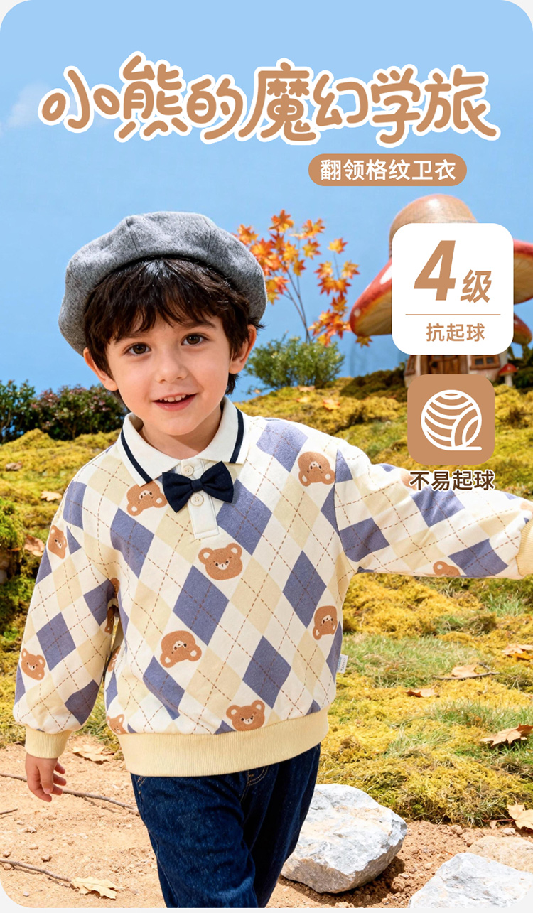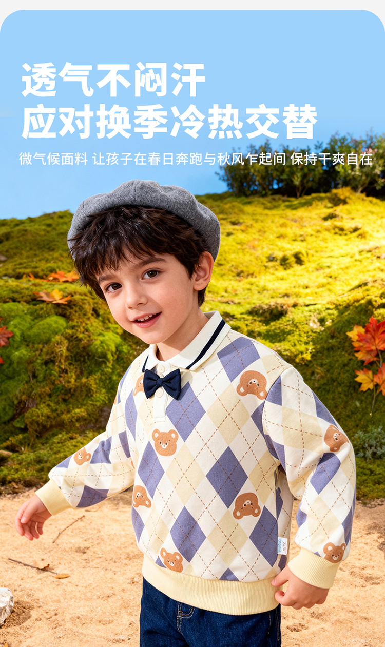 贝贝怡童装男童套头卫衣2026春季新款儿童格子学院风上衣男孩ZB1FS009