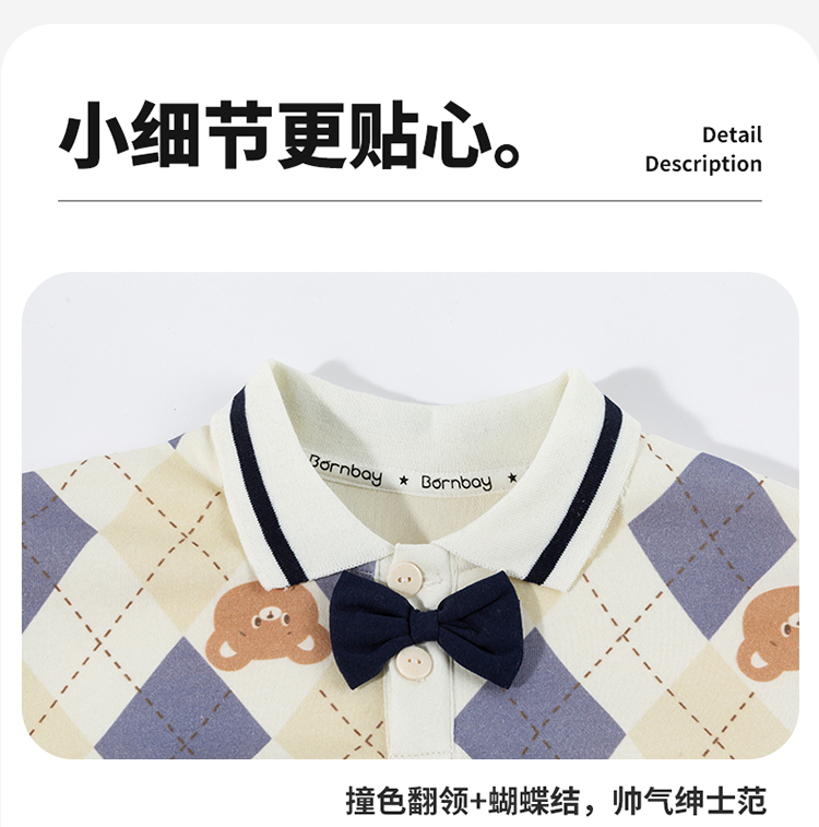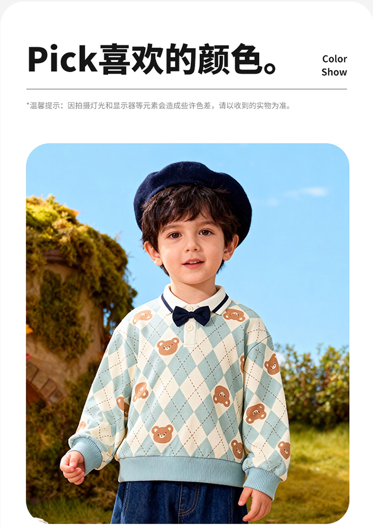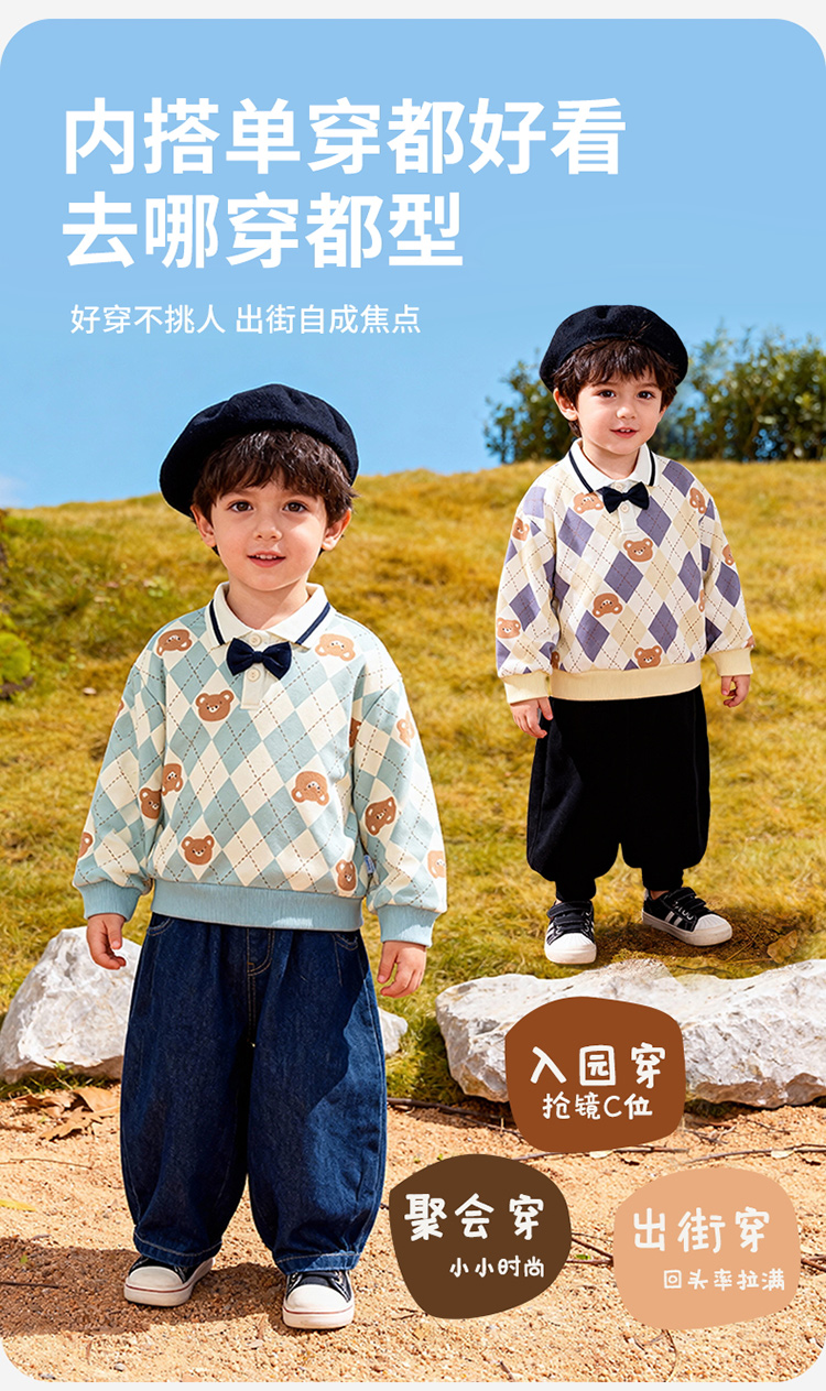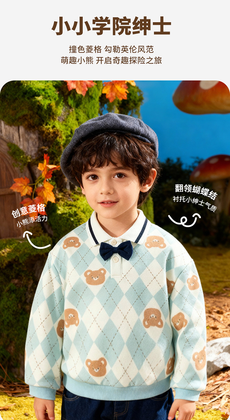 贝贝怡童装男童套头卫衣2026春季新款儿童格子学院风上衣男孩ZB1FS009