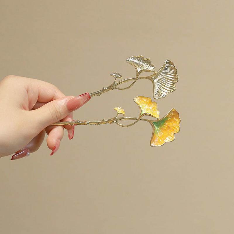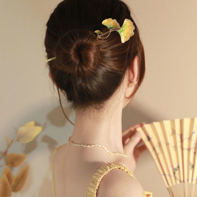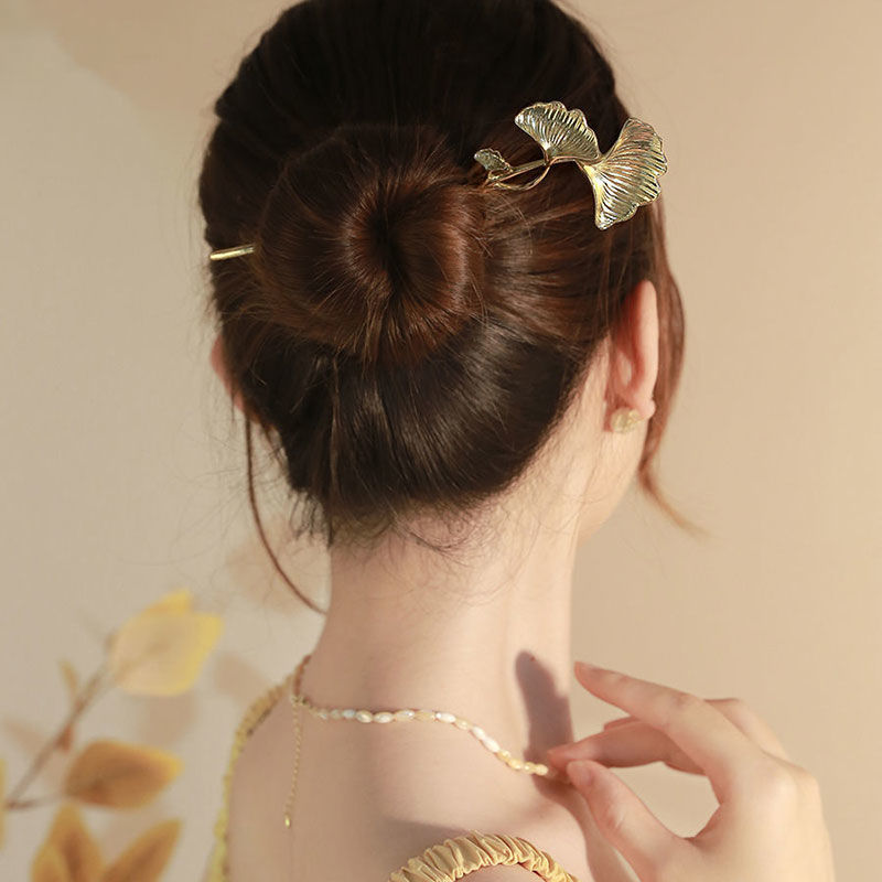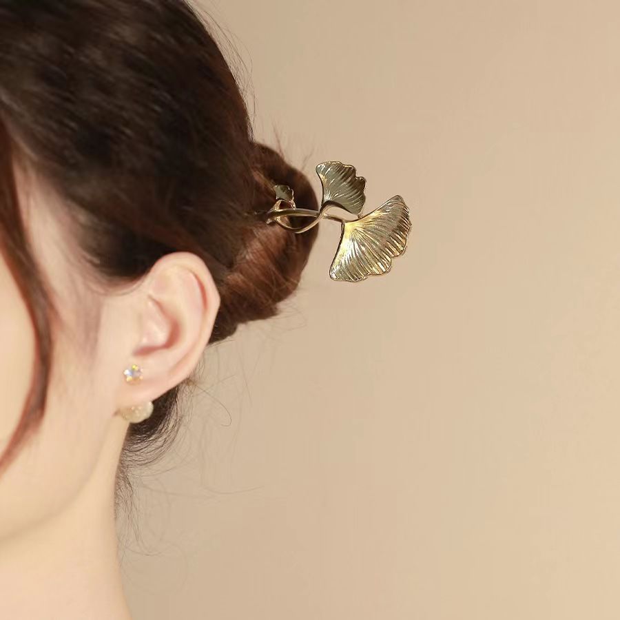 中国风气质银杏叶发簪高级感丸子头发饰古风优雅盘发簪子