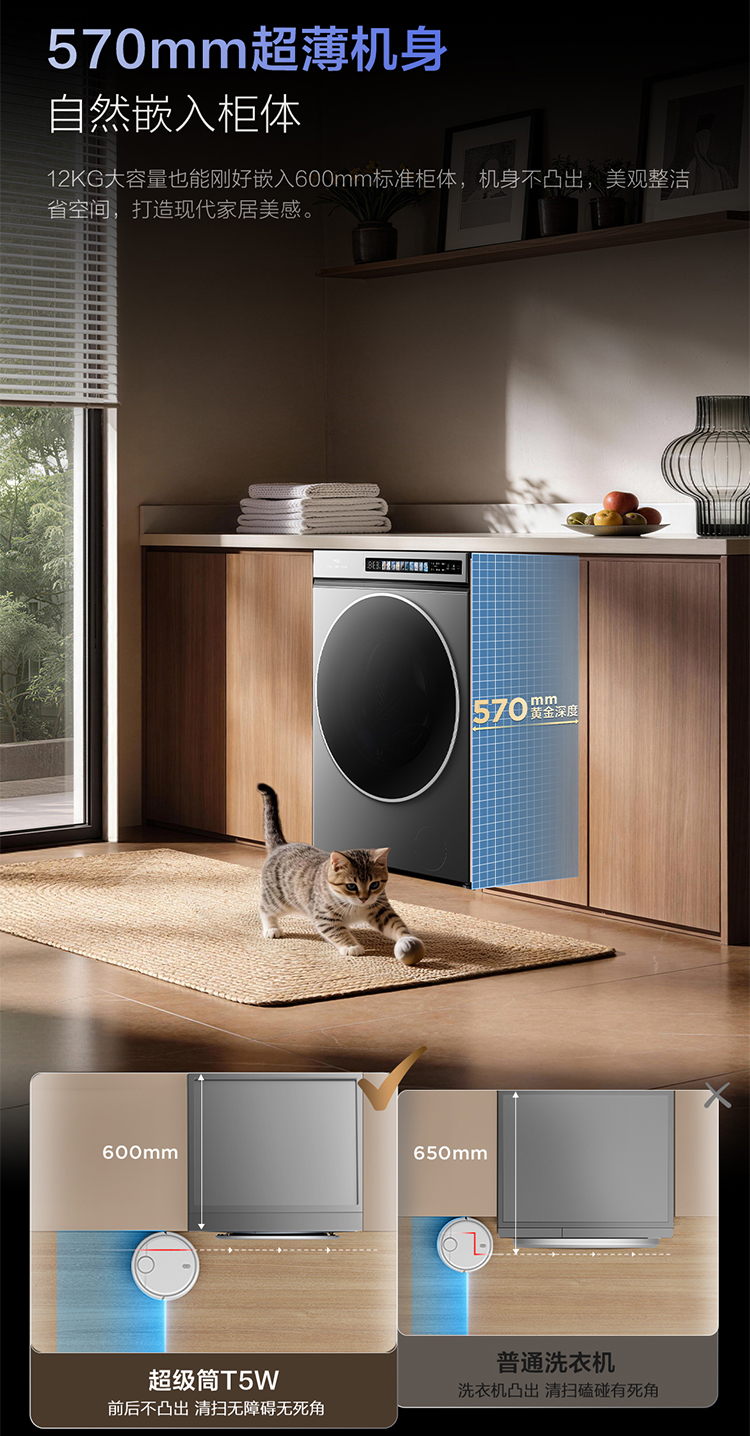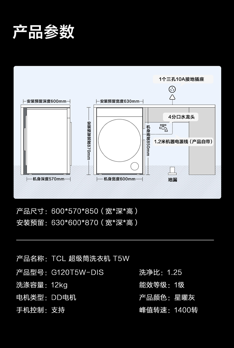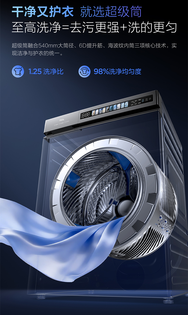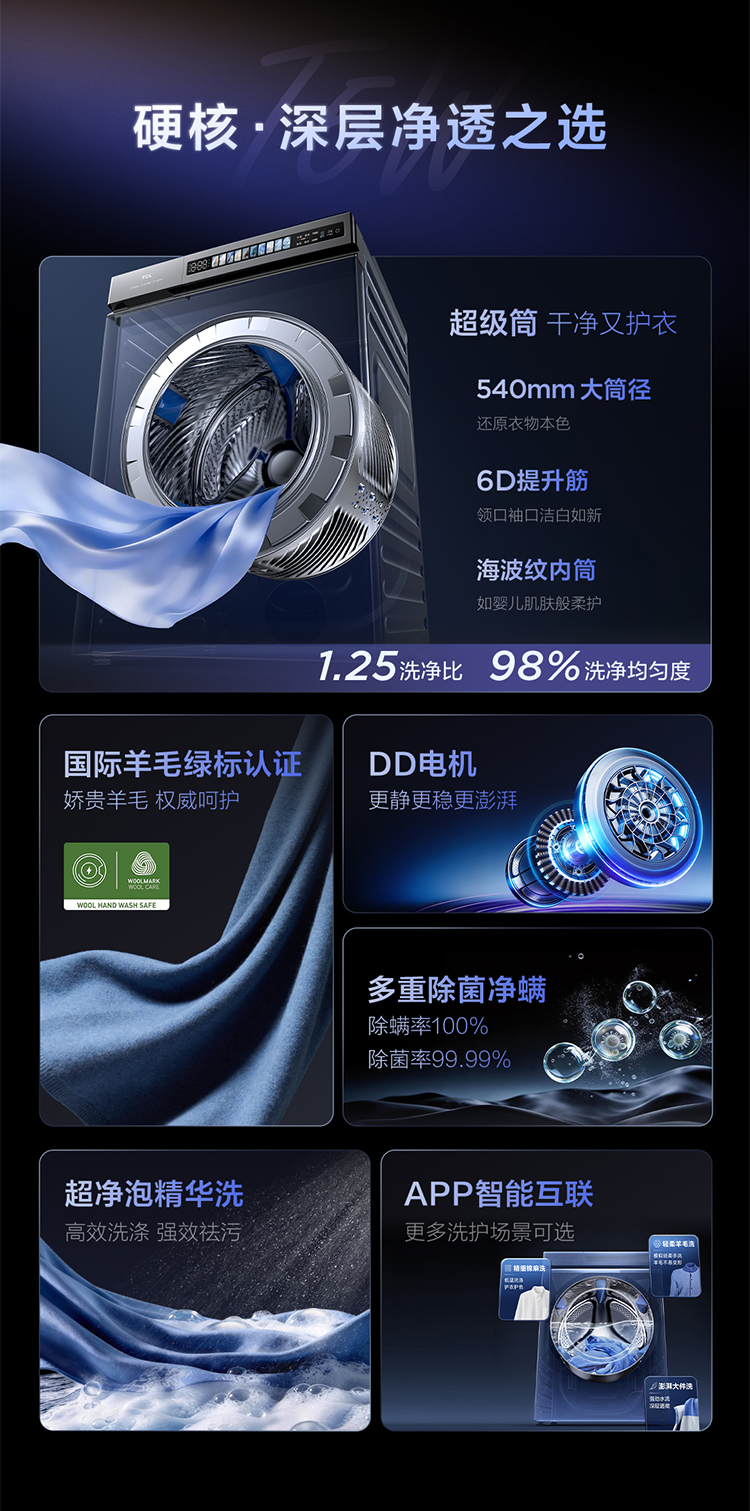 【新品上市】TCL超级筒洗烘一体洗衣机全自动家用12KG直驱羊毛绿标护衣G120T5W-DIS