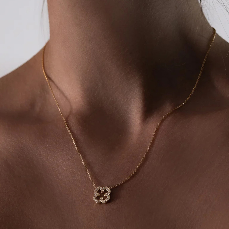 北京仓|Skultuna-Pavé-金色 四叶草 密钻 吊坠 项链[瑞典设计师]