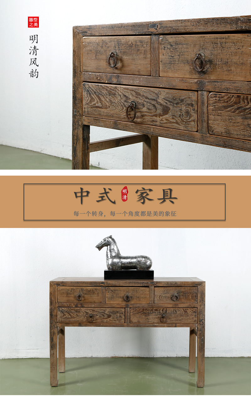 美丽华伦古董玄关桌 实木五屉桌 明清家具收藏中式老物件 榆木家具