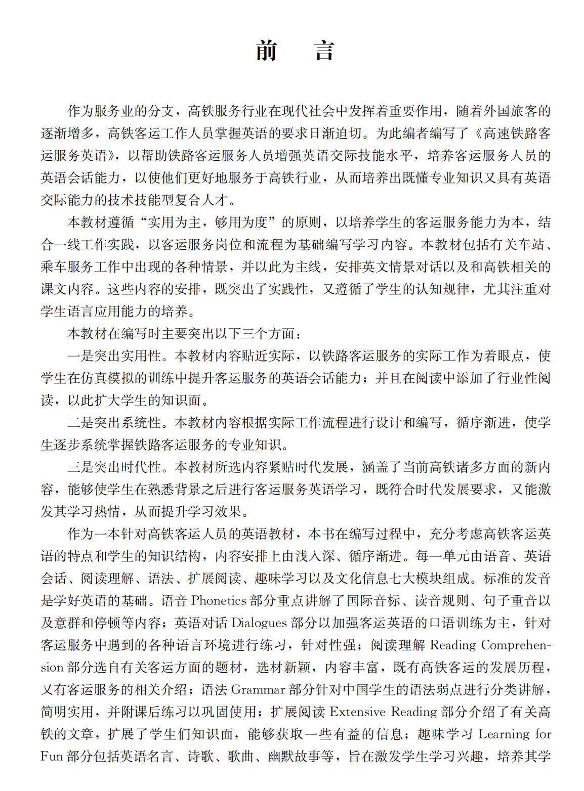 高速铁路客运服务英语 职业教育系列教材·铁道运输类 高速铁路客运乘务专业精品教材