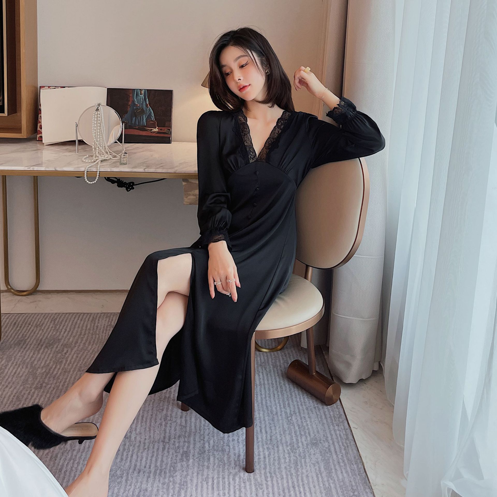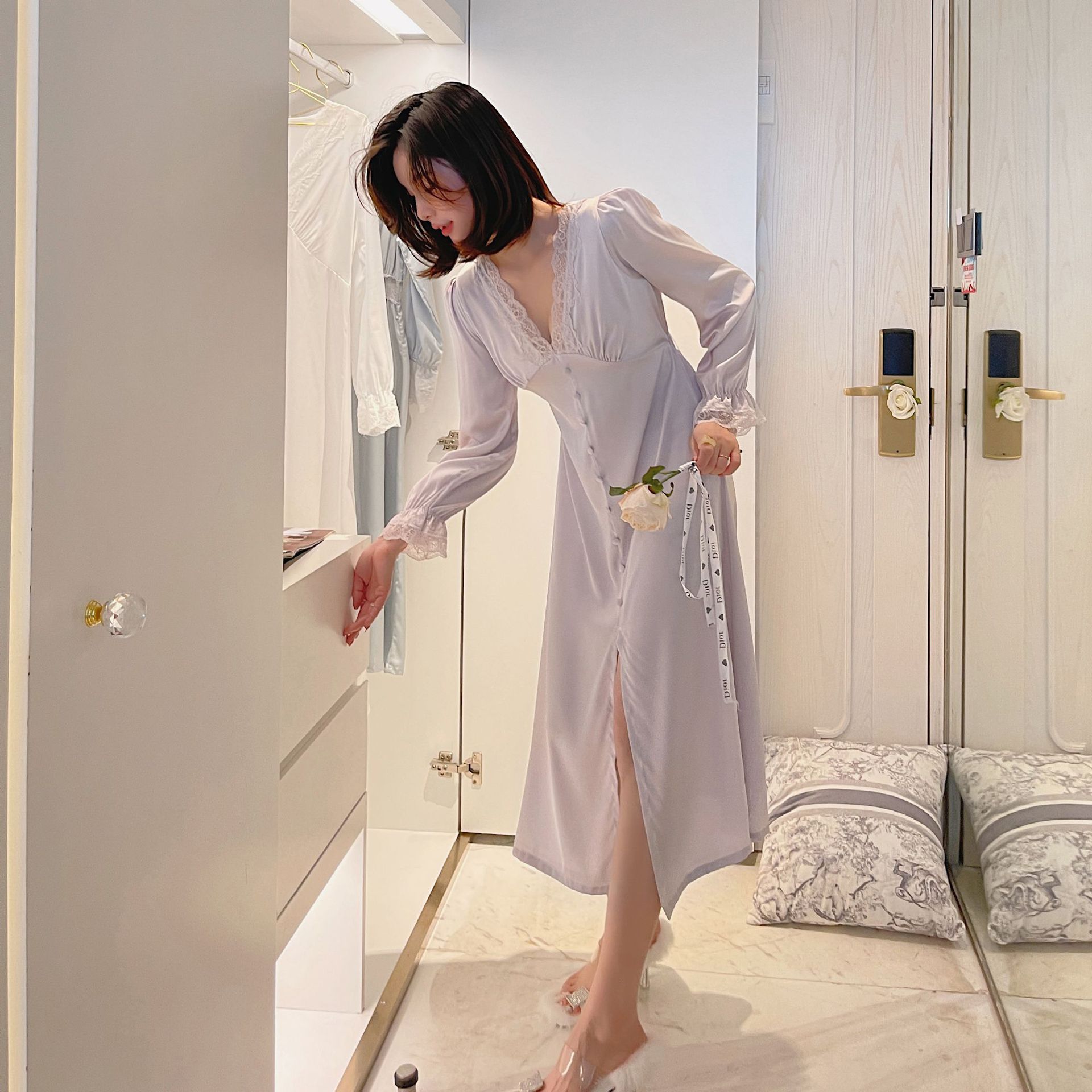 【复古蕾丝】冰丝长款睡裙 蕾丝性感宫廷 洋气舒适