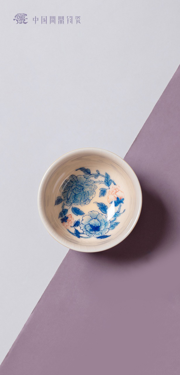 问鼎钧瓷鹅黄青花晖盈杯(富贵花开)