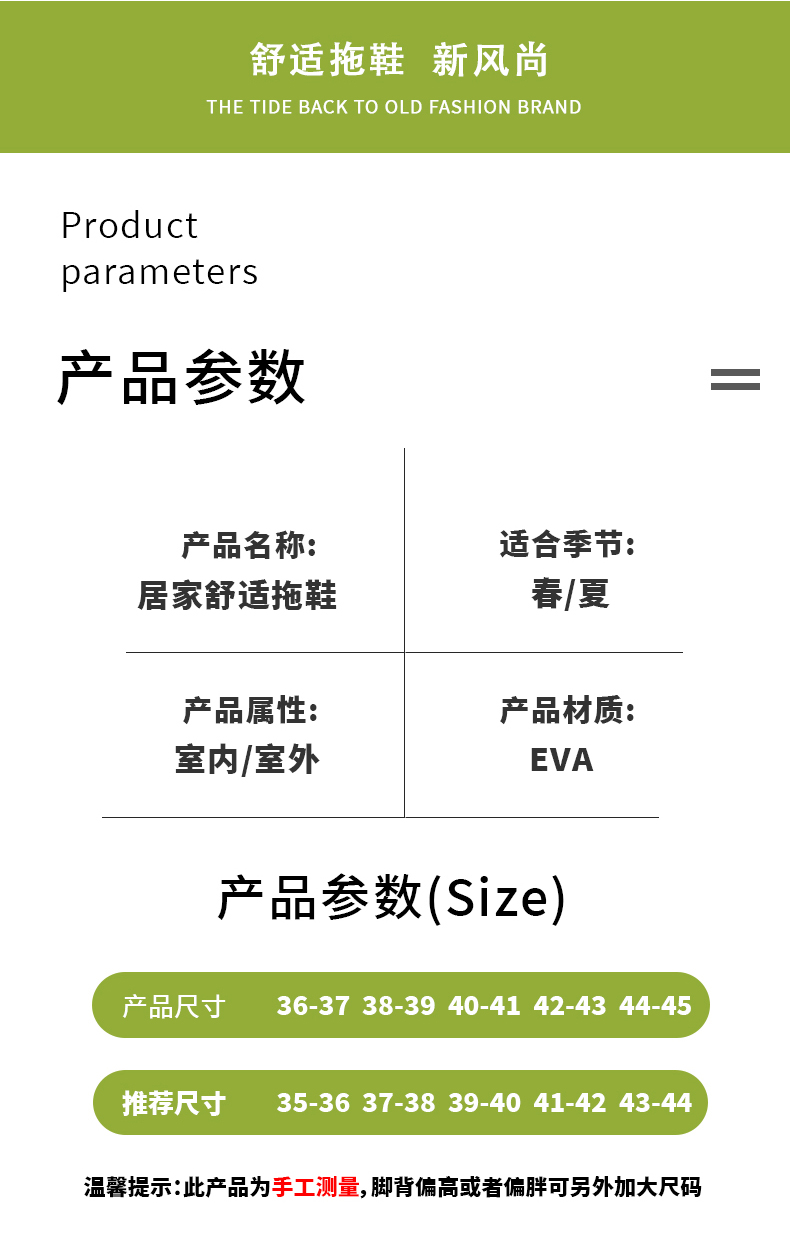 【品名】【超值两双装】宅小年 空气气垫凉拖鞋 轻盈舒适 马卡龙色系 【规格】粉色、绿色、黄色、紫色、黑色、灰色 【尺码】36-45码 【产地】国内 【材质】EVA 【发货包装】独立包装 【发货地】义乌 【发货快递】极兔、邮政随机发 【不发货区域】新疆、西藏、港澳台 【发货时效】3-7天,周末节假日顺延 【温馨提示】建议拍大一码!!! |