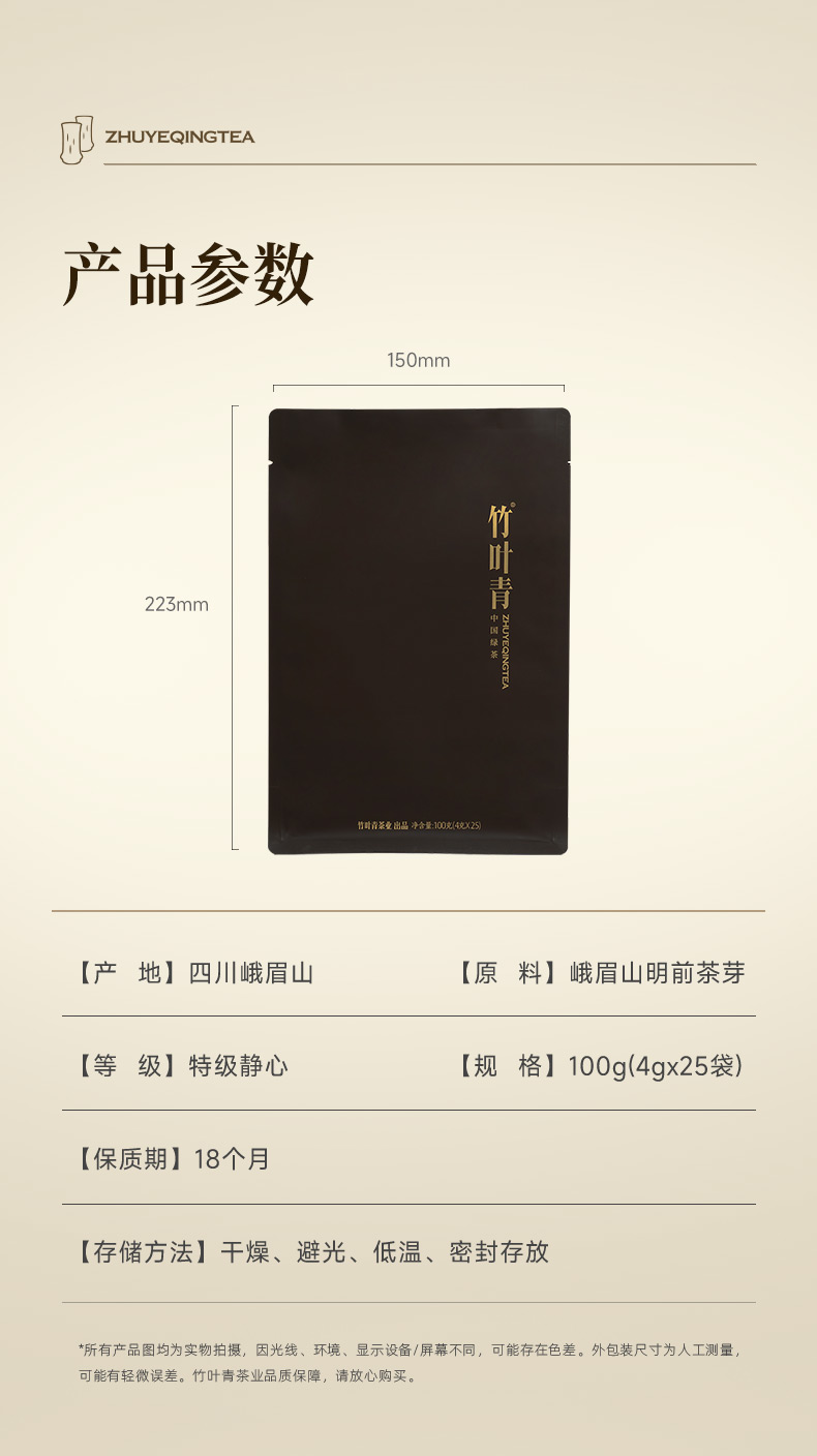【2025春茶现货】竹叶青茶叶峨眉高山绿茶特级(静心)自饮袋装100g