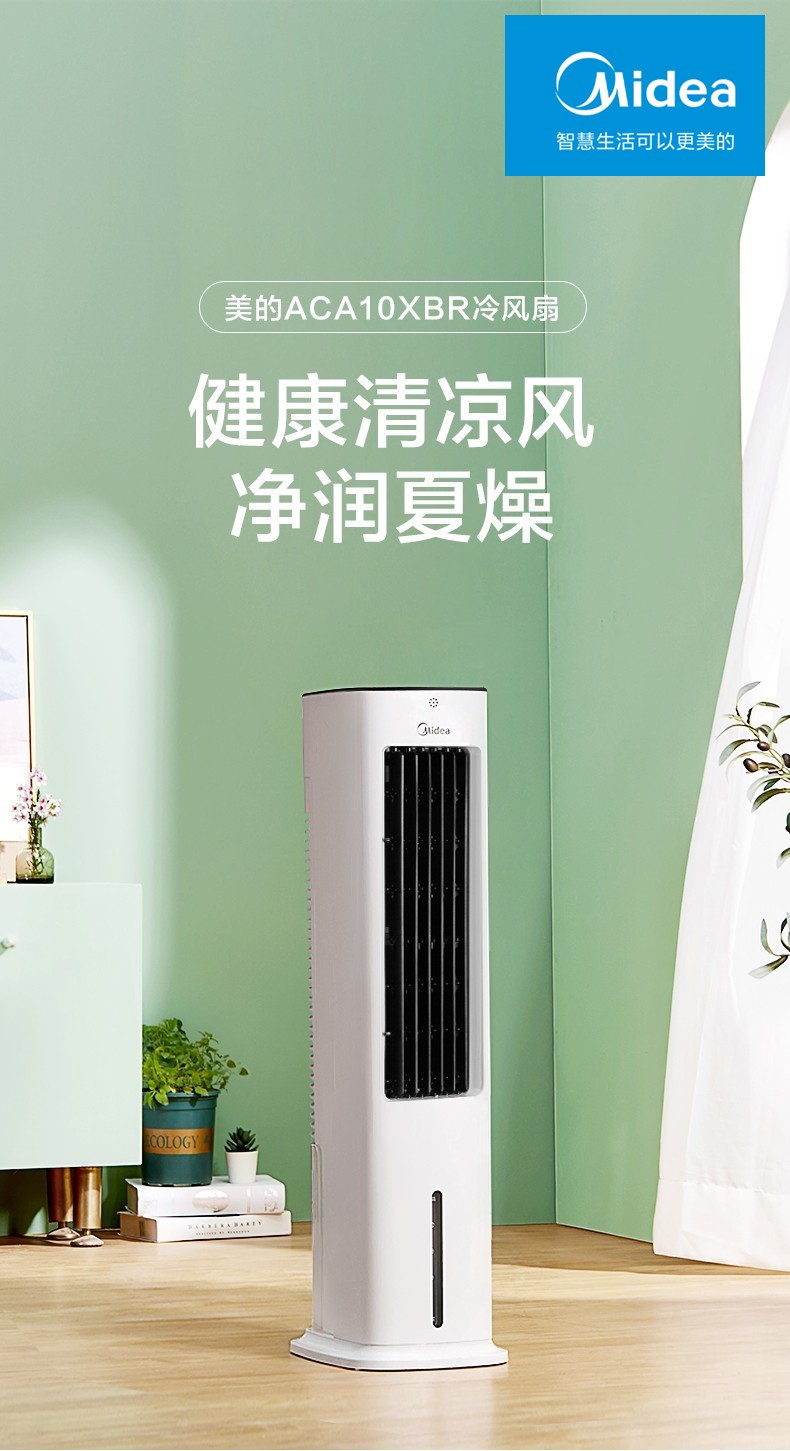 美的(Midea) ACA10XBR遥控定时空调扇低音落地水冷塔扇蒸发式冷风扇凉风修长机身大风量家用