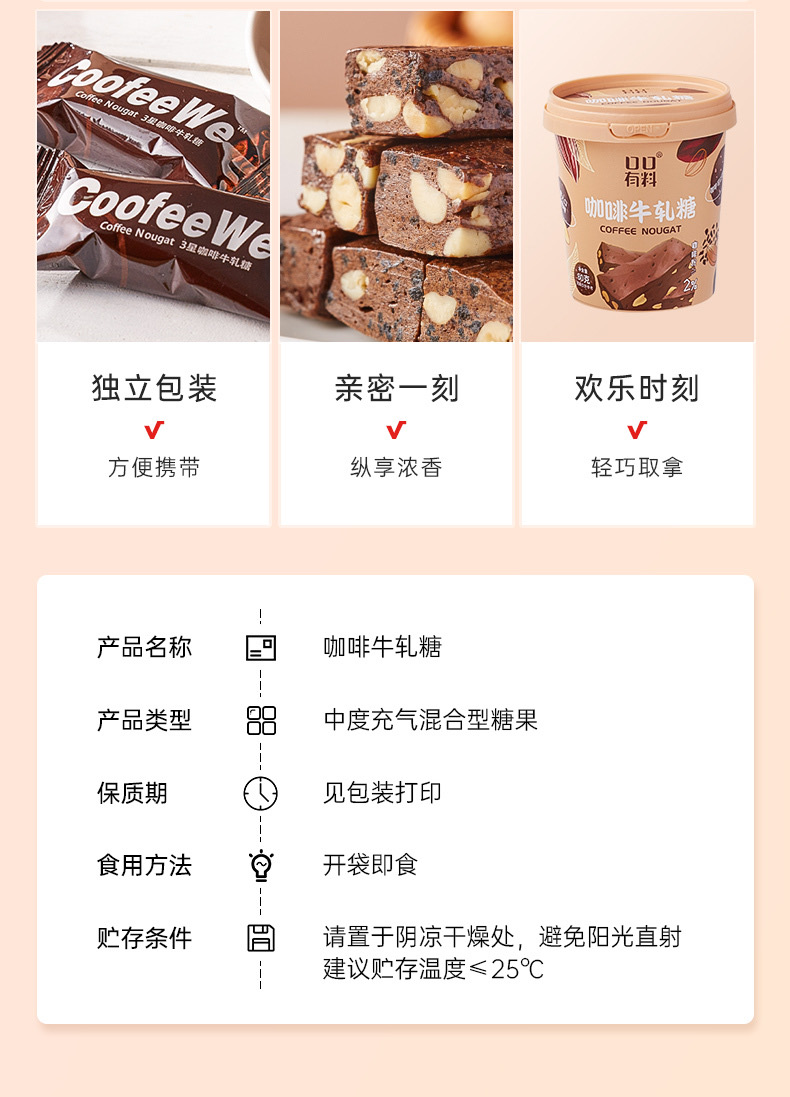 【超值买二送二!咖啡花生牛轧糖】香甜可口,小吃休闲食品,咖啡花生牛轧糖网红高颜值年货糖果散装小零食小吃休闲食品健康