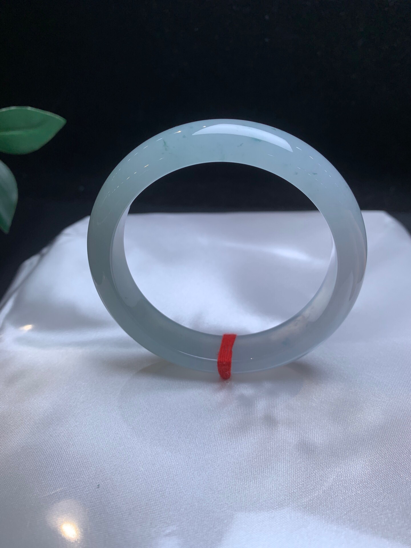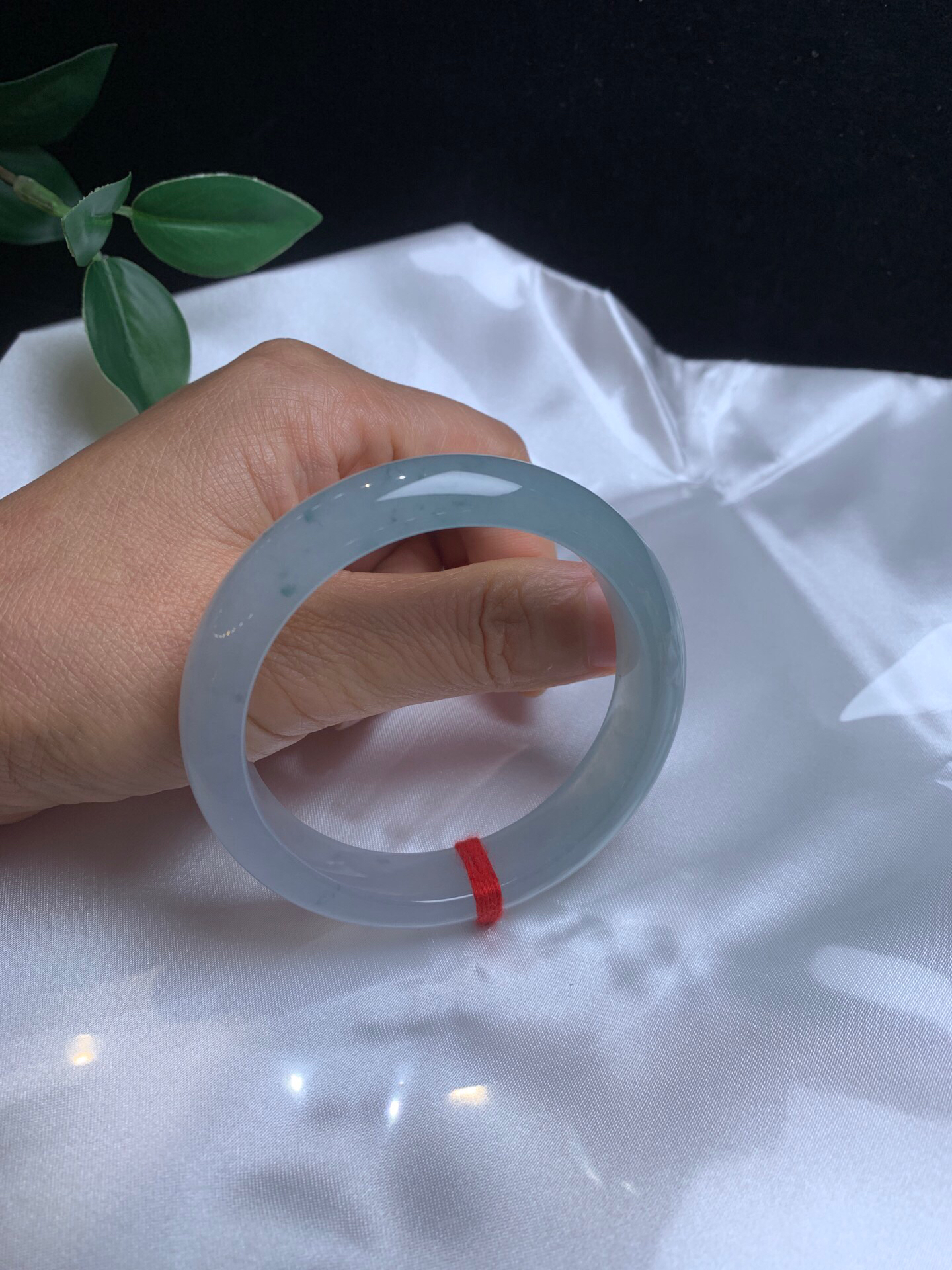 620308,55.5 冰飘花手镯,冰底飘清新细碎的花色,白底的地方起光了,干净秀气, 底妆很均匀