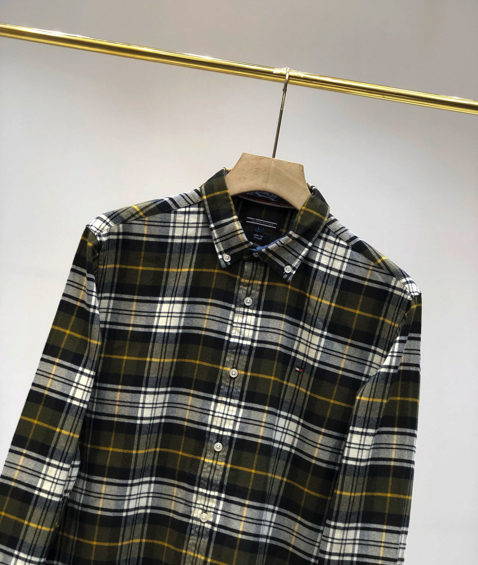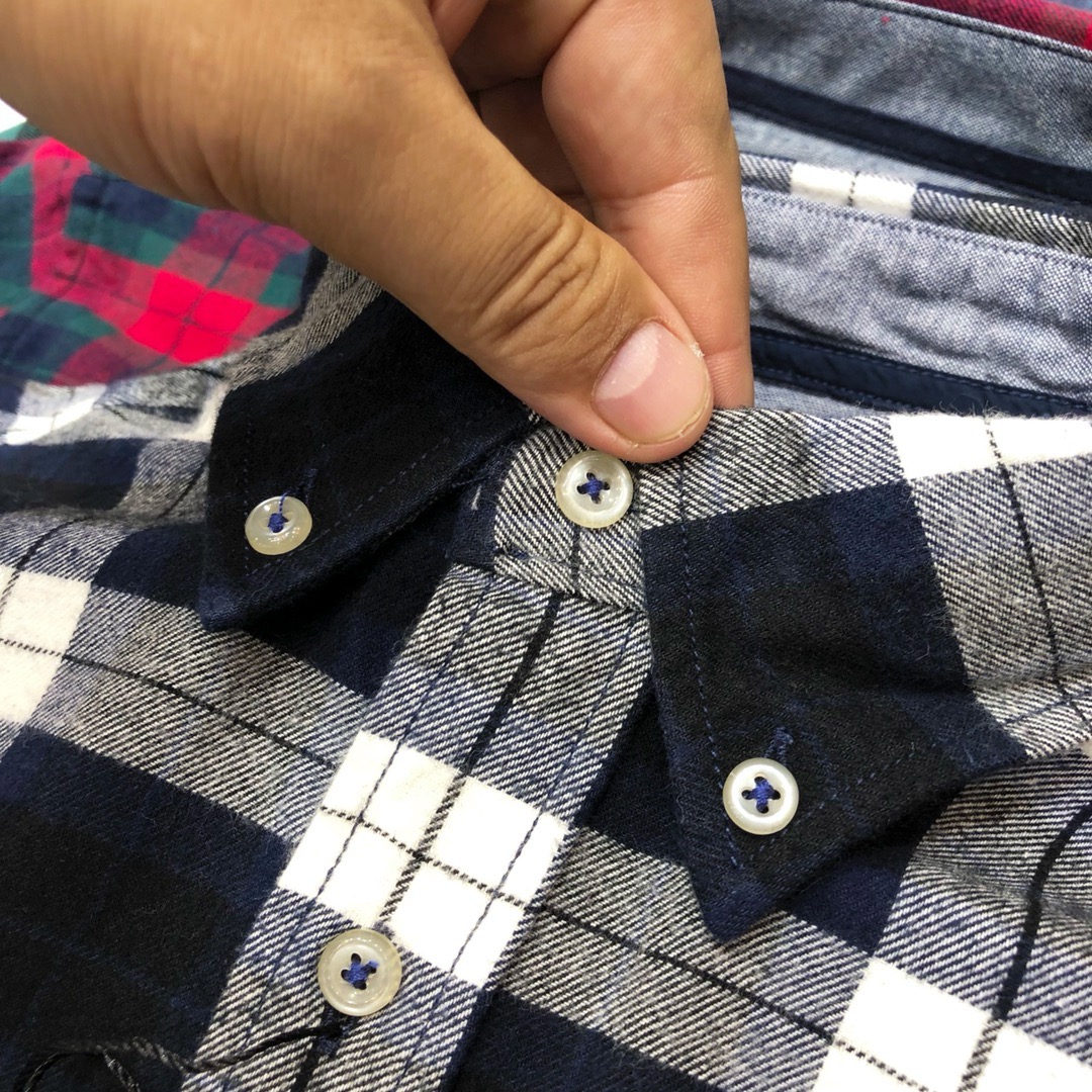此款衬衫设计采用的是好几年之前流行的格纹拼色设计