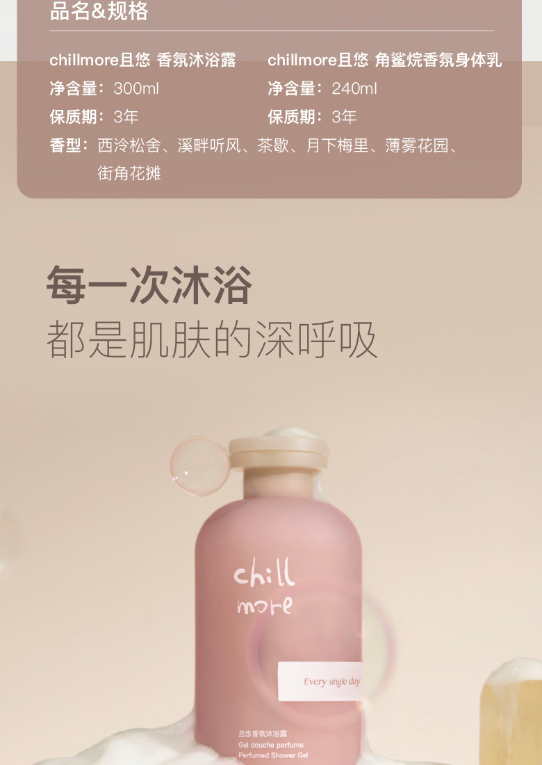 【春夏香体补水套组】 chillmore且悠香氛沐浴露300ml+身体乳240ml(送5g磨砂膏小样+20ml沐浴露+28g发膜)