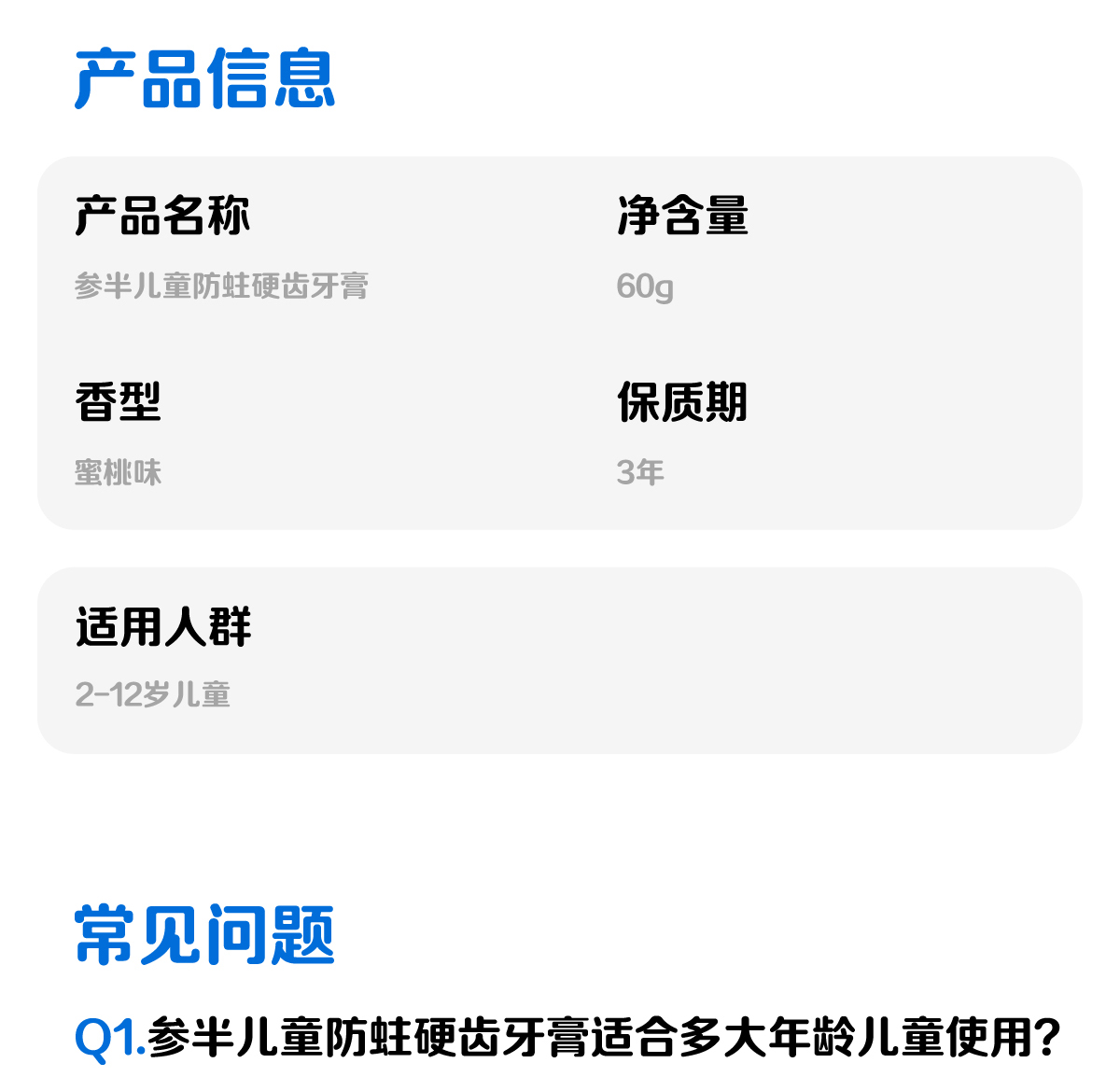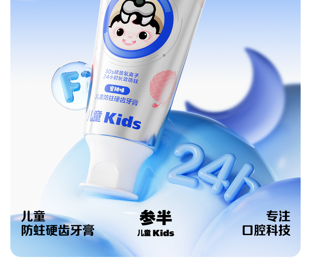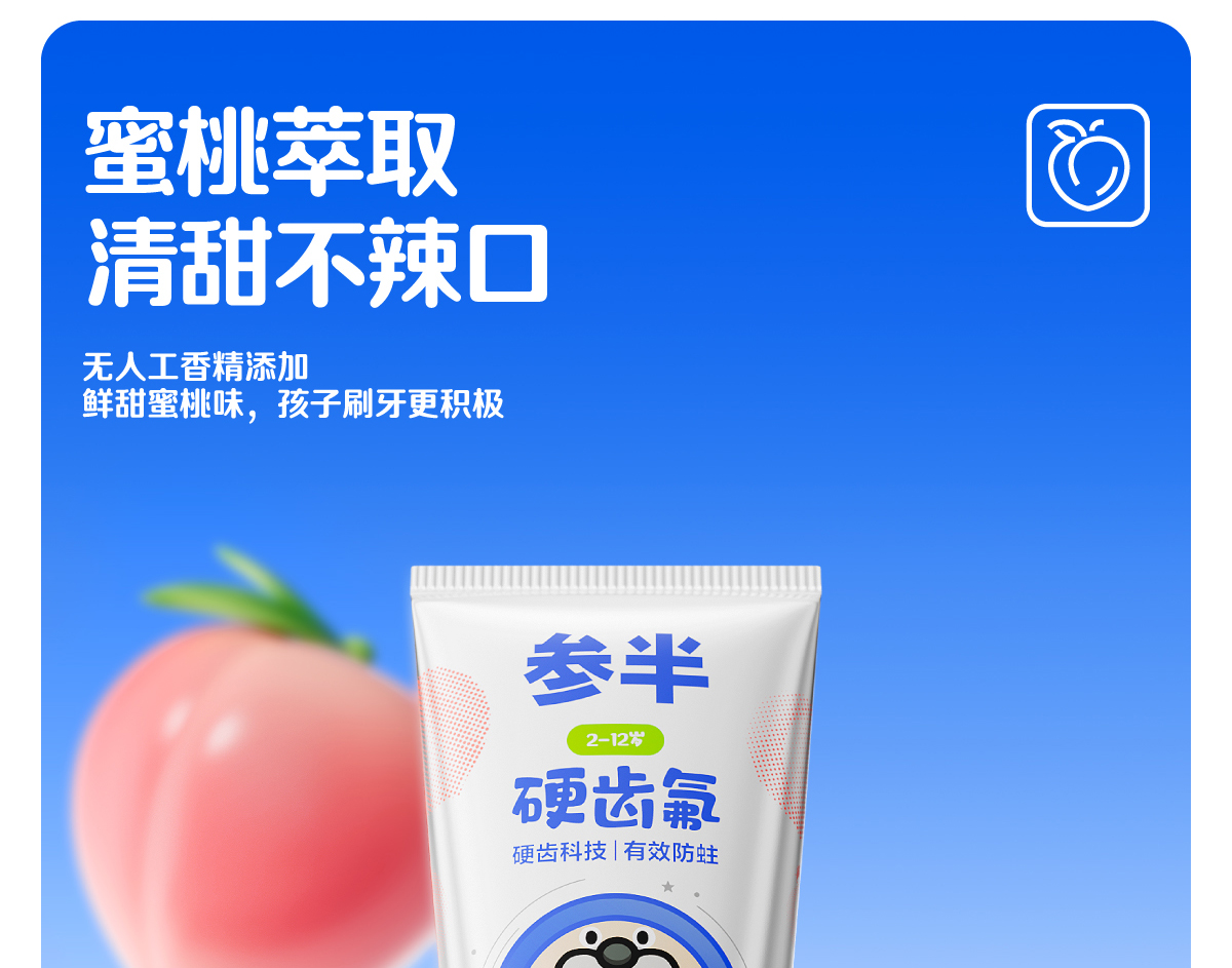 【新品上线】参半儿童防蛀硬齿蜜桃味牙膏--60g