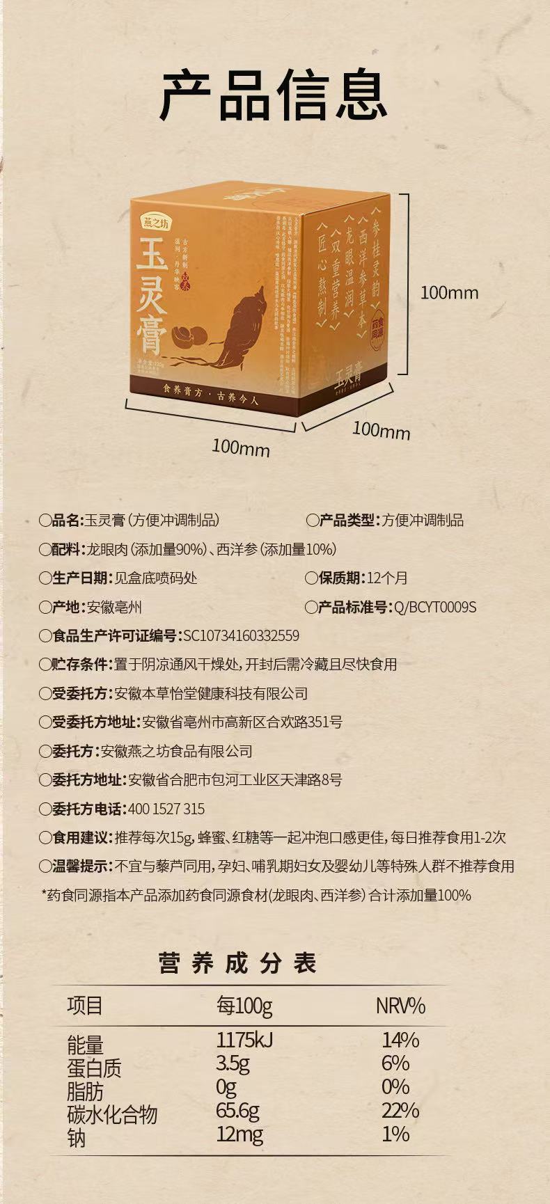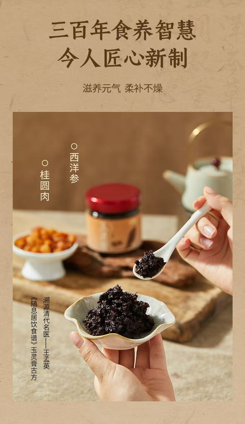 燕之坊玉灵膏220g 西洋参古法蒸制桂圆龙眼肉姨妈冲调滋补即食膏