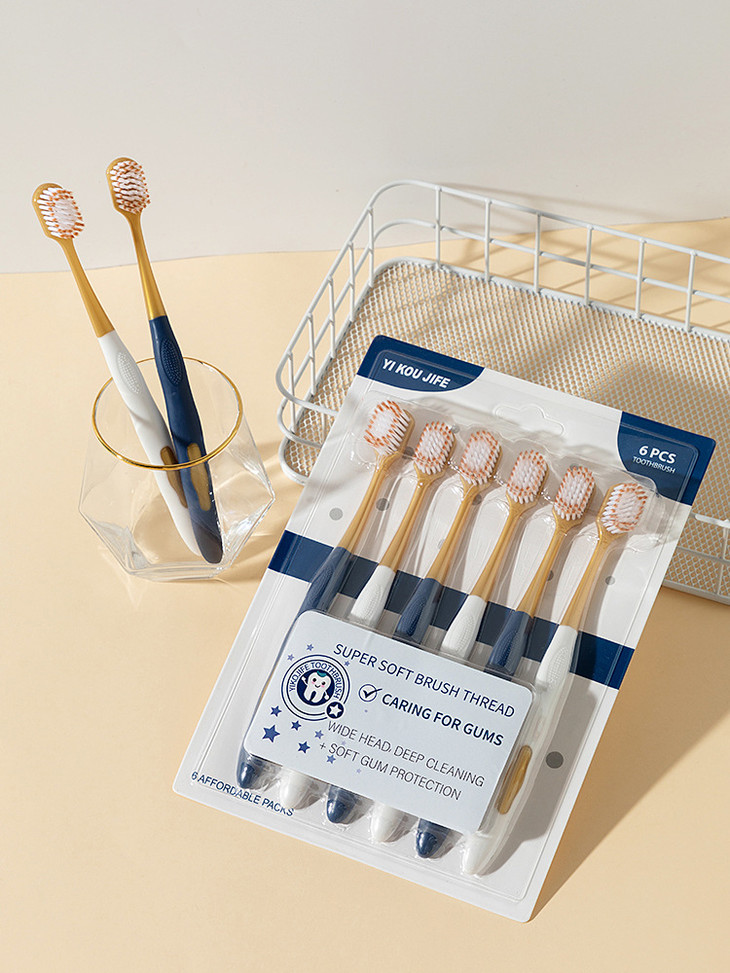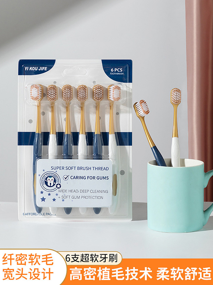 「9.9元到手6支!山姆同款」宽头家用6支装牙刷 男女通用成人软毛牙刷口腔护理