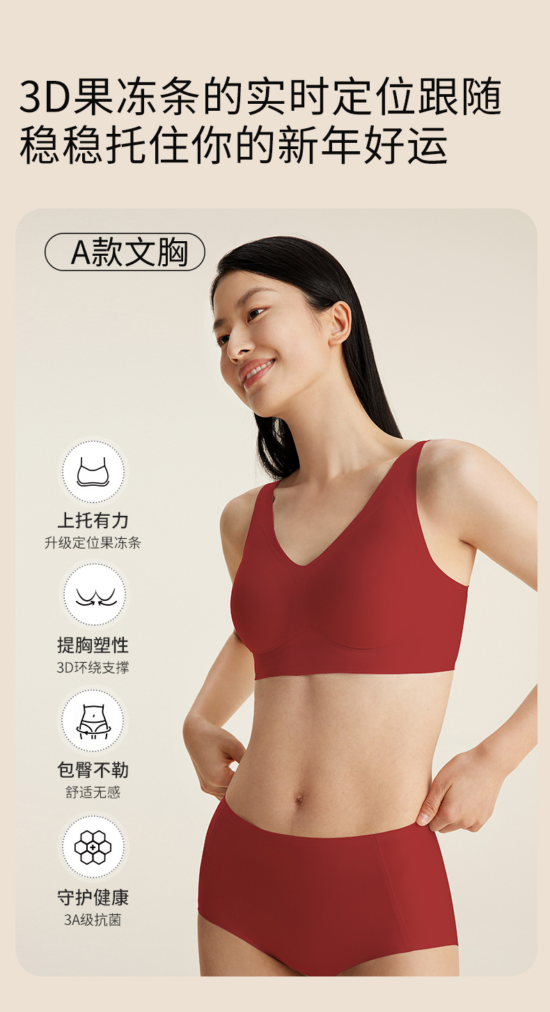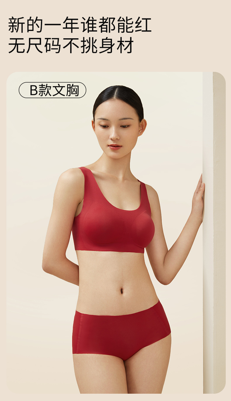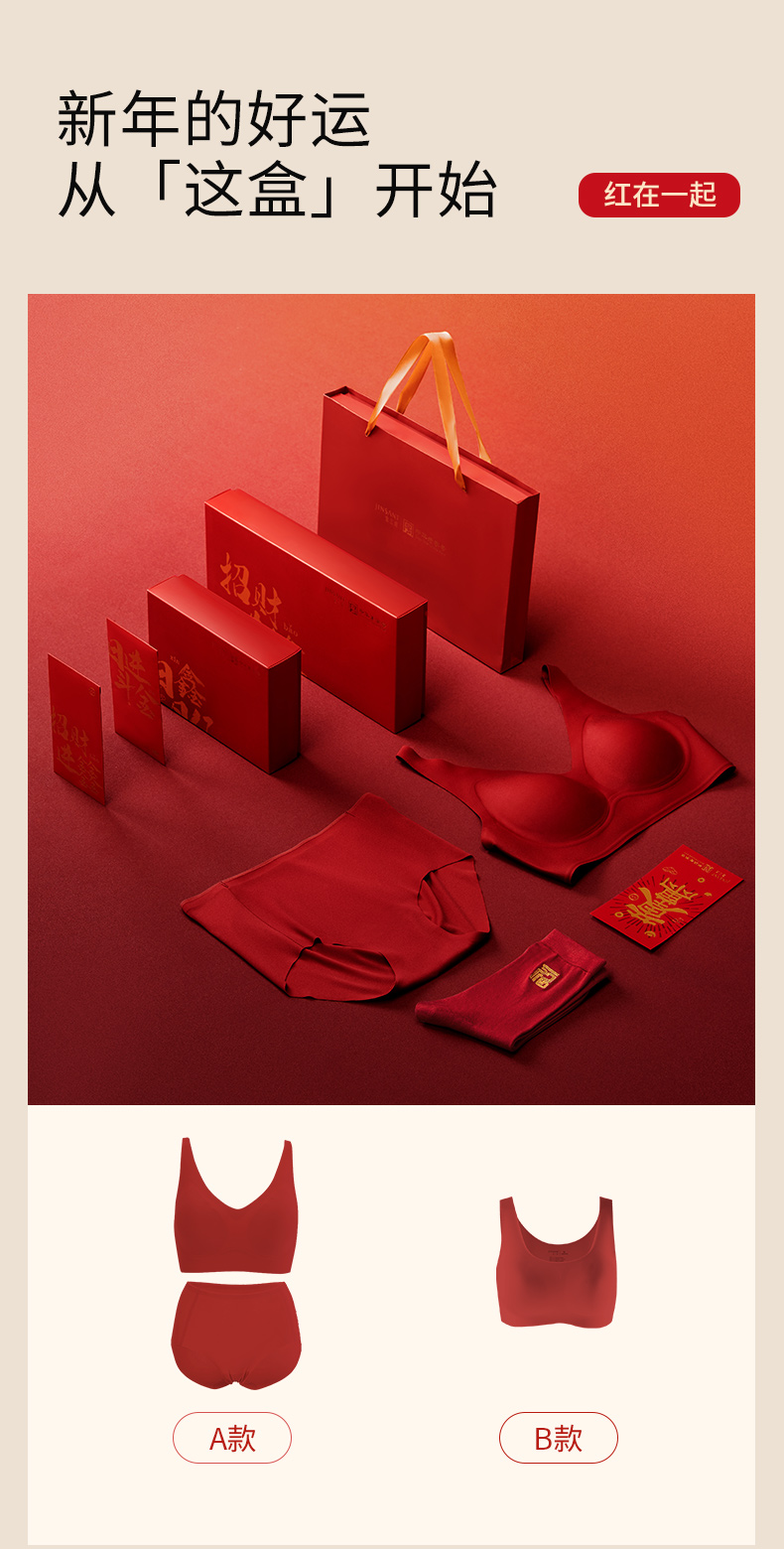 一起红】金三塔桑蚕丝文胸套装红色婚庆软支撑文胸内裤本命年 NZFDB301LH