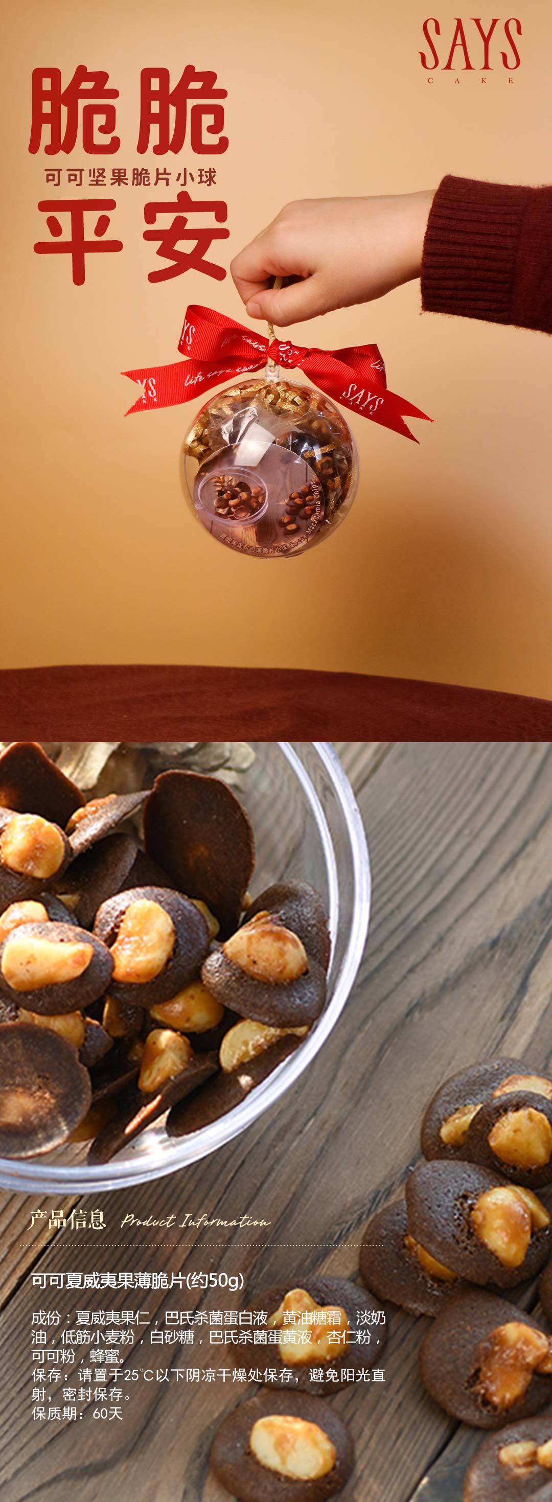 脆脆平安 夏威夷果可可薄脆片小球