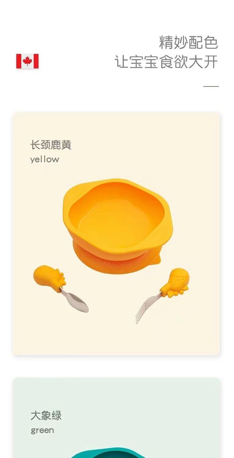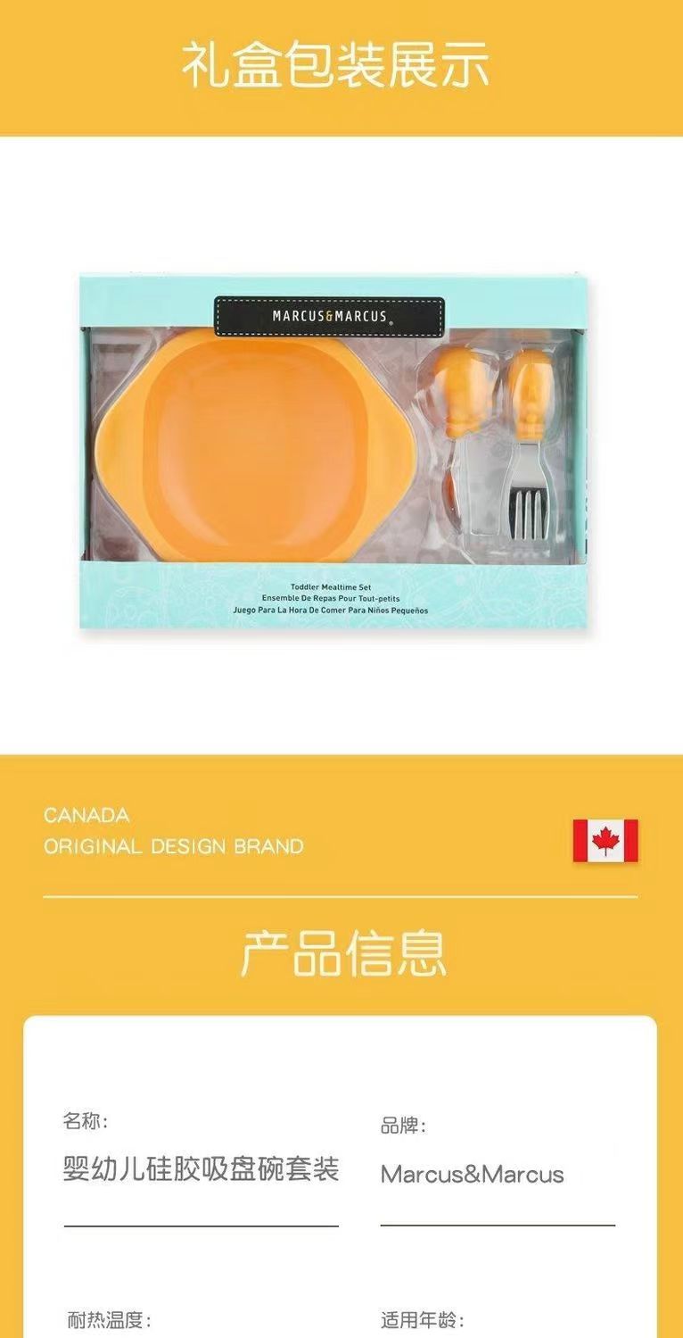 【一般贸易】加拿大马库斯叉勺碗套装宝宝食品级硅胶Marcus三合一辅食碗婴童专用