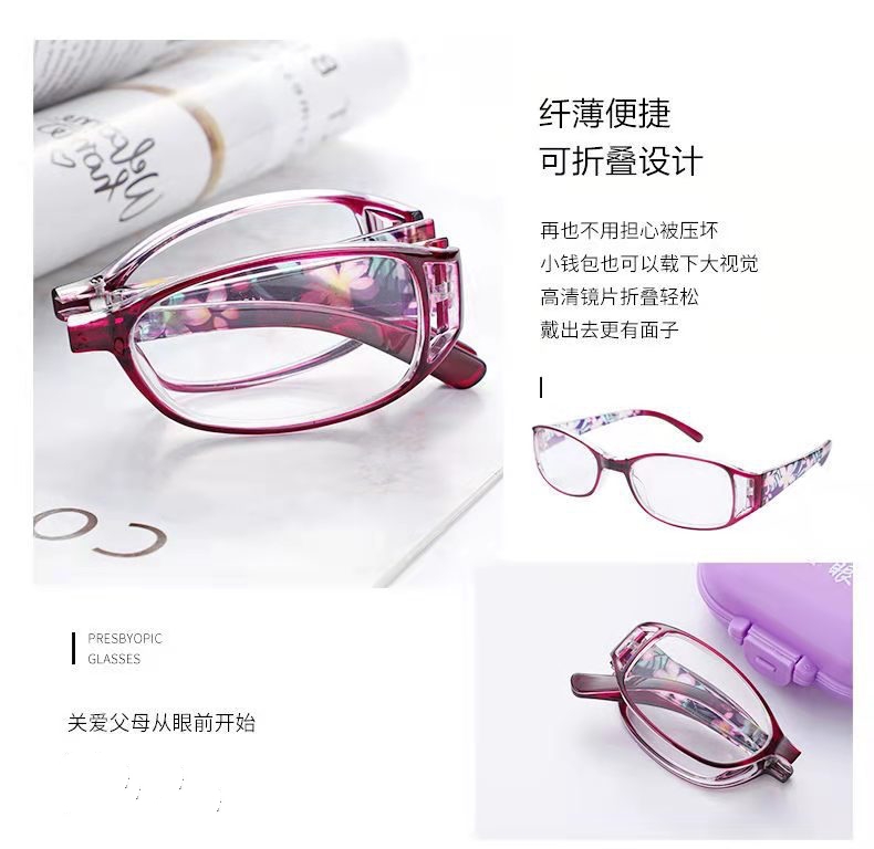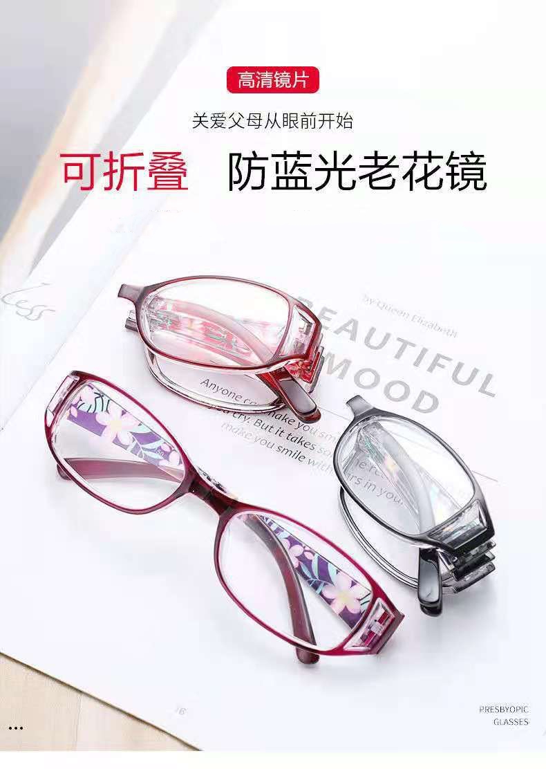 【限时49.9抢!超轻防蓝光老花镜】高清镜片,可折叠设计,带眼镜盒,携带超方便,塑料印花烫印时尚中老年人便携式