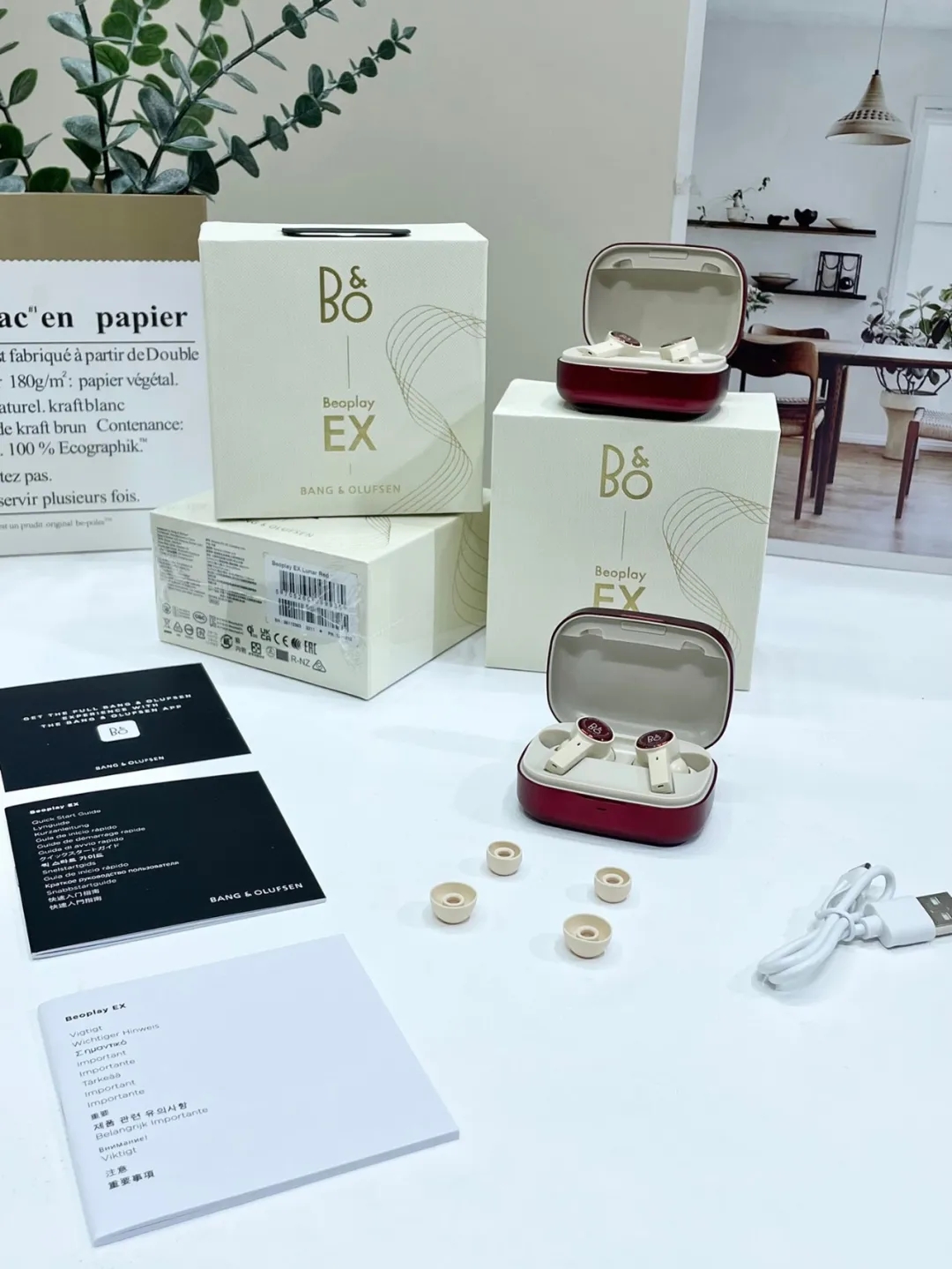 纯正进口货!2024 7月的新贸易单,张艺兴同款,丹麦B&O EX真无线运动入耳式降噪蓝牙耳机!音质完美,纯粹真声,如现场亲临,真的太炸了,7月初来的,还热乎,深圳贸易公司纯正进口来的一批货,真的是原装原货,音质秒杀一众品牌!带有音响效果的耳机,动圈单元、音响振膜,打造出完美的音质效果,那种“咚咚咚”的炮击低音体验,令人情不自禁!那种自然的中音和清脆的高音质感,更令人心旷神怡!续航长,配合充电仓可连续使用20个小时以上,外出旅行都完全不用担心!经典的人工体学外形设计,佩戴舒适不累,入耳充实不易脱落,试用一下午,完全徜徉在音乐的海洋里,完全不累!真正的好货,保证你没用过如此震撼音效的耳机!不用考虑,入入入!三色可选:国运红、经典黑、玫瑰金