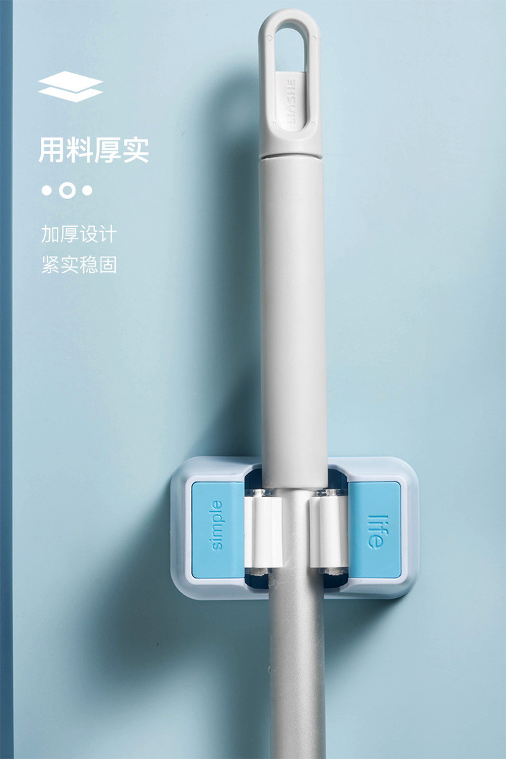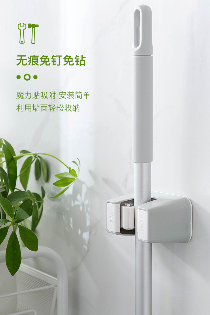 【家居百货】浴室拖把挂钩免打孔卫生间壁挂式粘钩夹子挂架卡座拖布收纳架