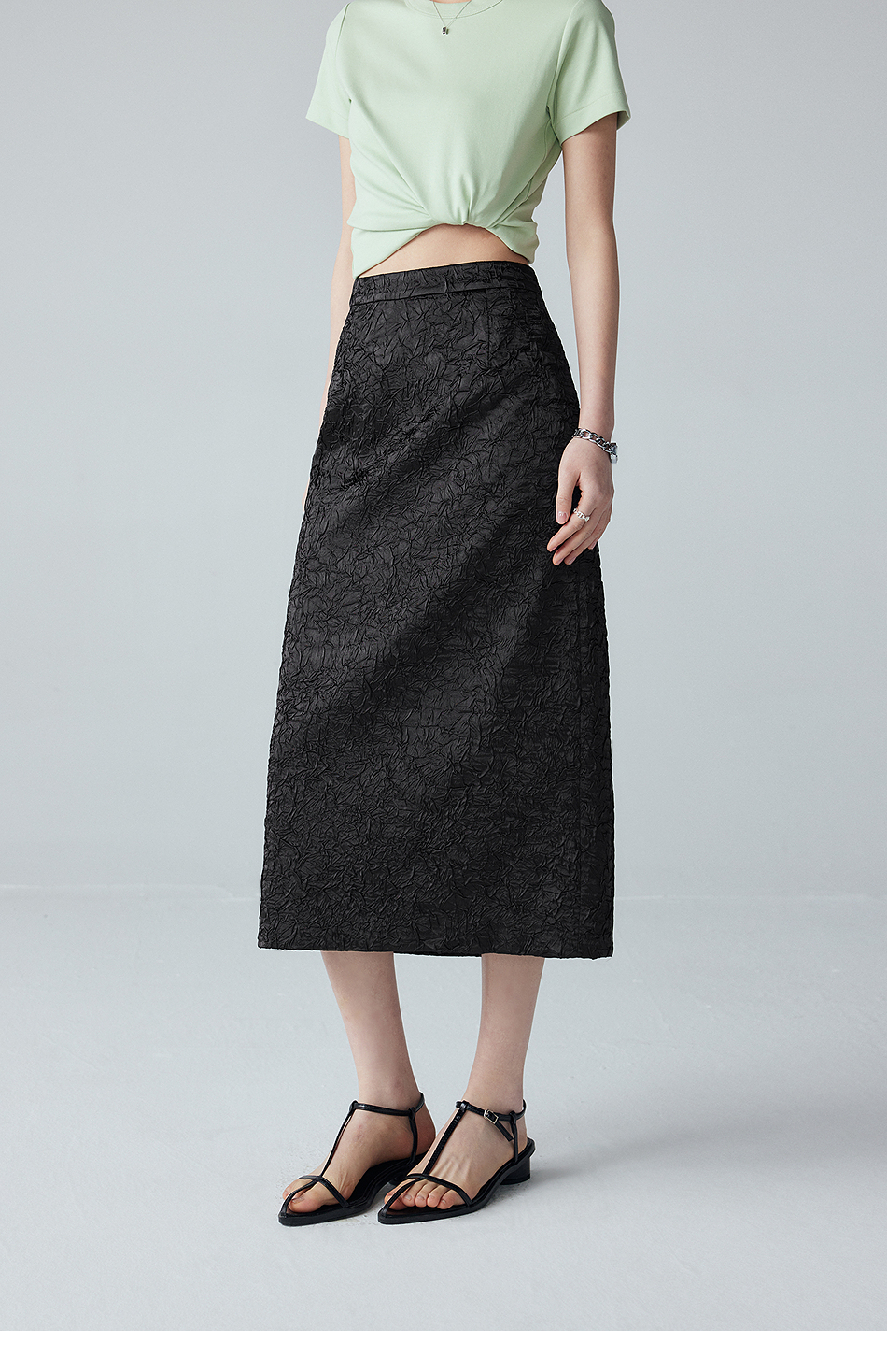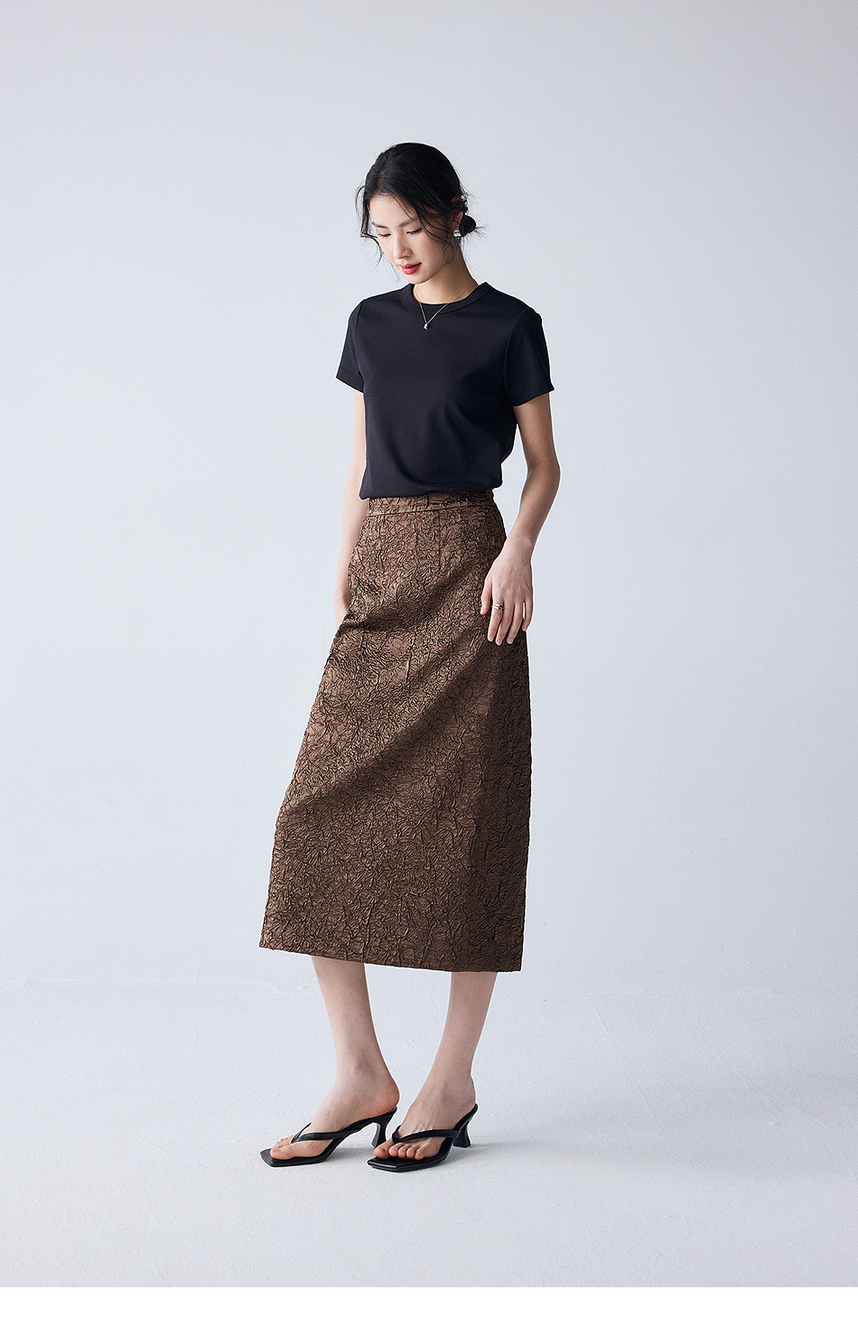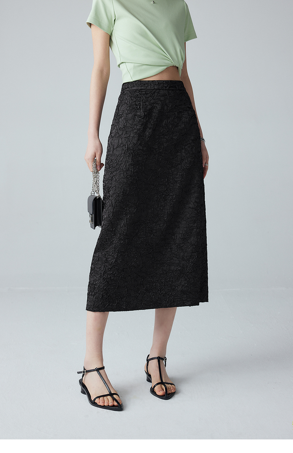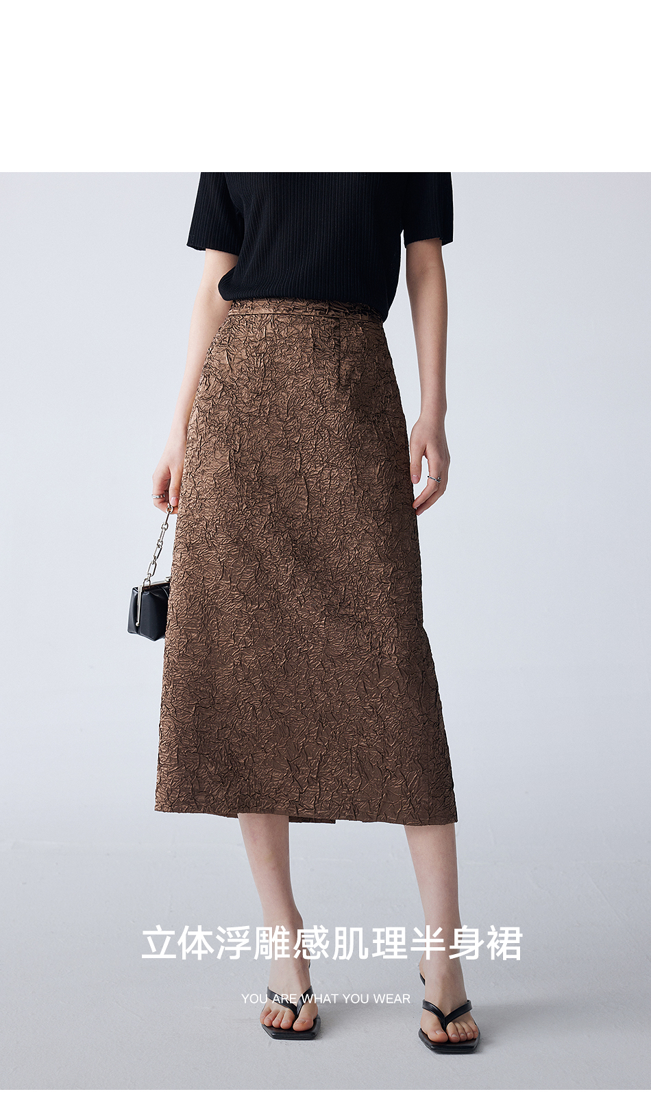 棉仓352617012-褶皱肌理半身裙