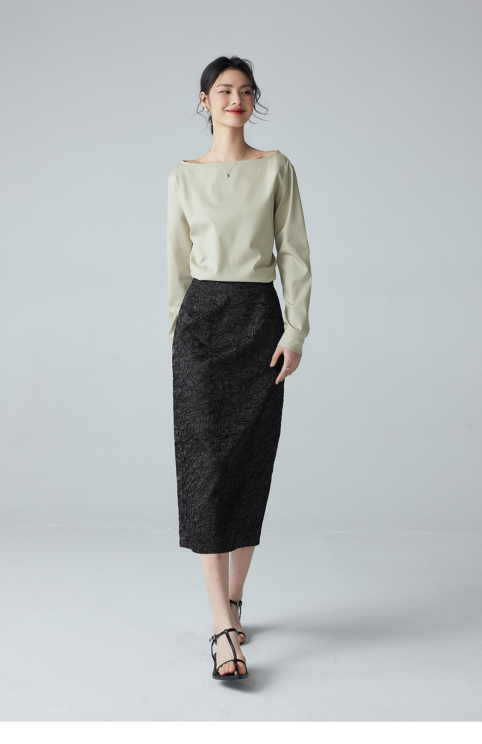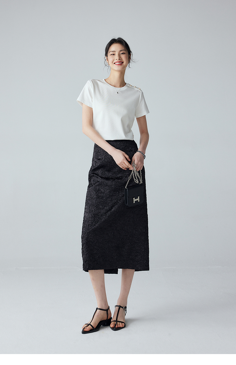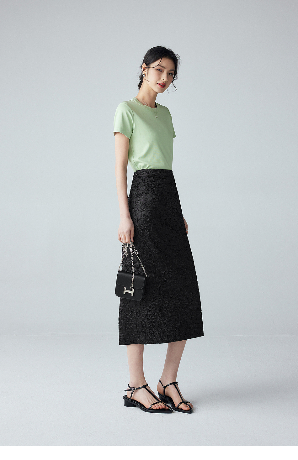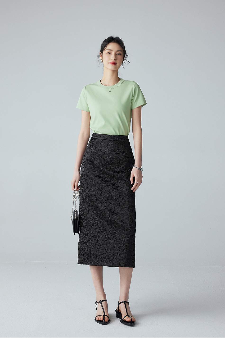 棉仓352617012-褶皱肌理半身裙