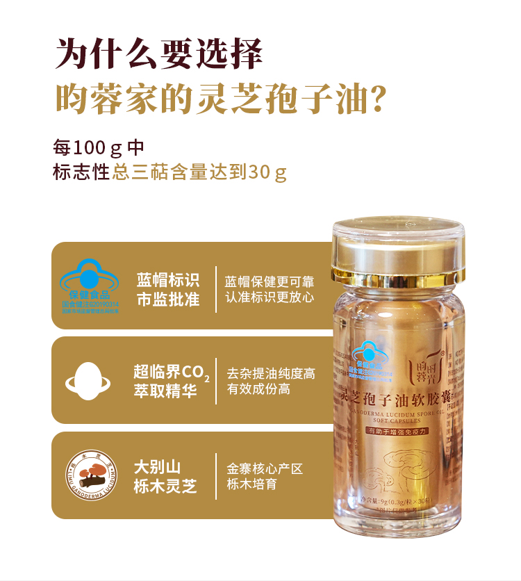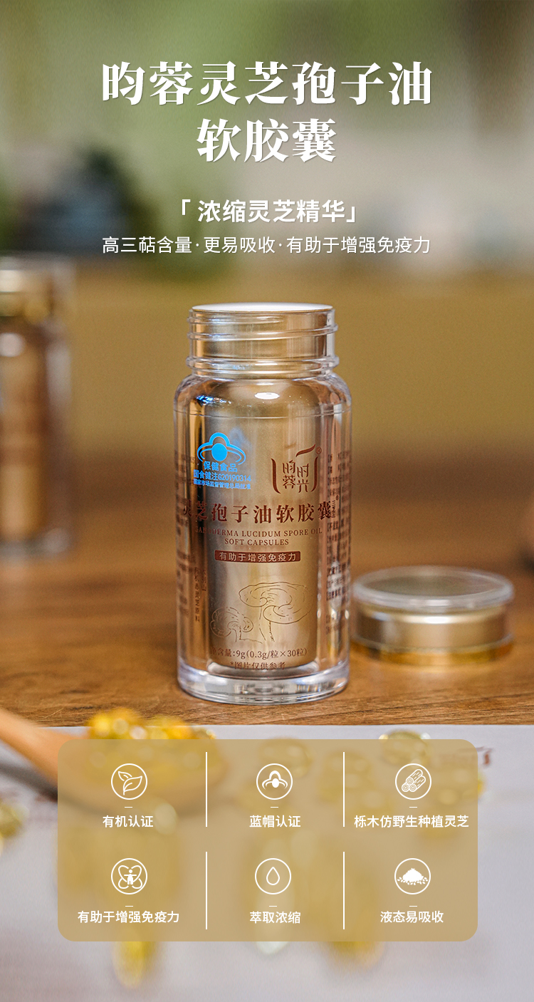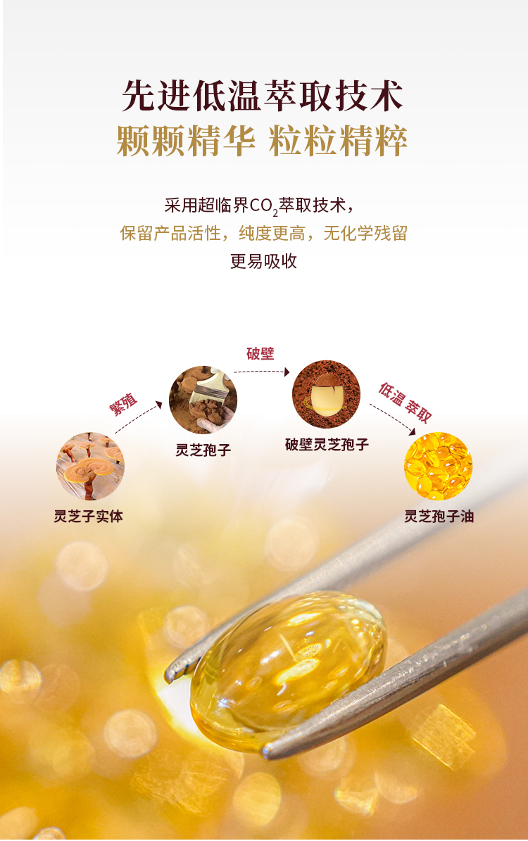【灵芝孢子油软胶囊】先进低温萃取技术·颗颗精华·粒粒精粹 (0.3克×30粒×2瓶)