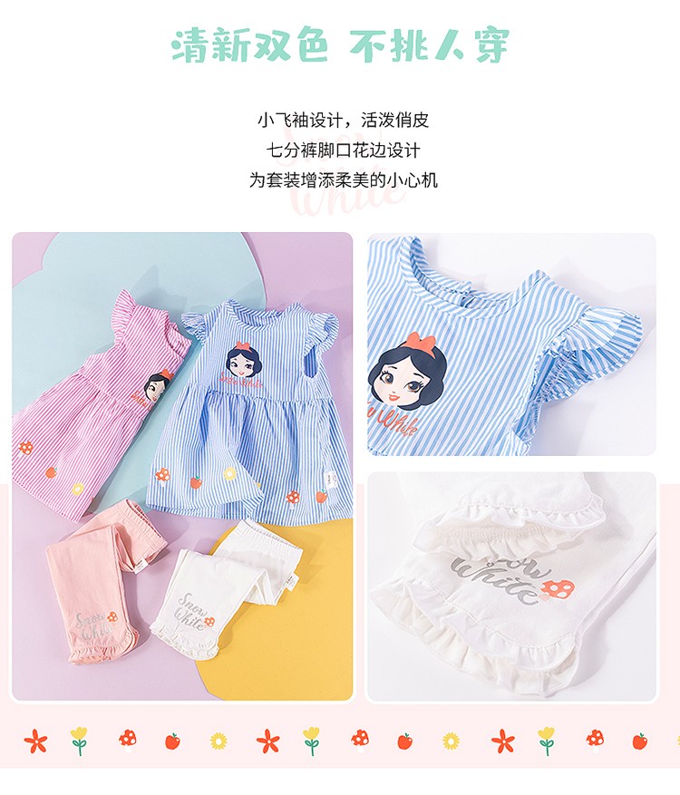 迪士尼童装女童套装白雪公主套头套装小飞袖上衣打底裤2件套212T1252