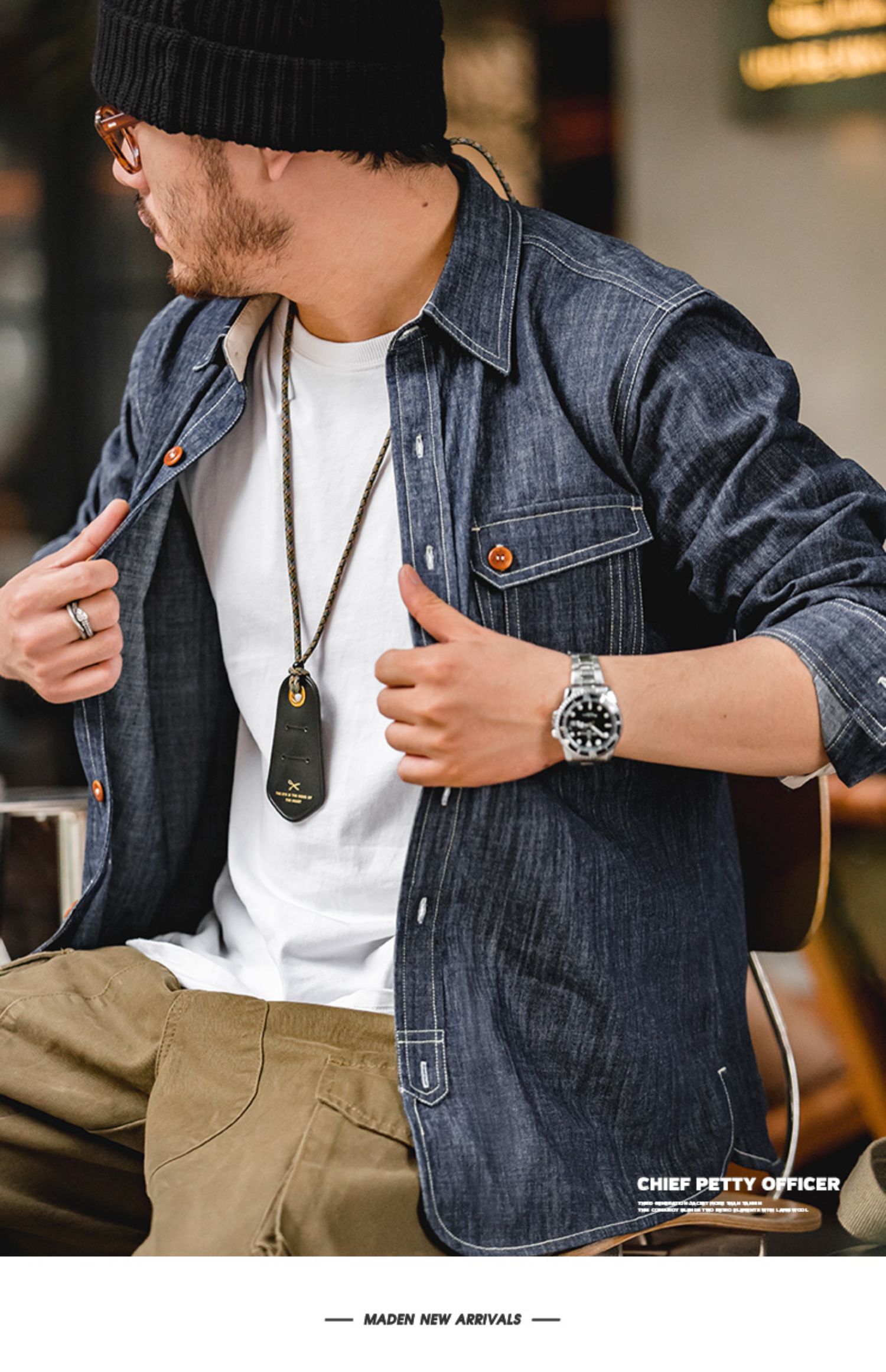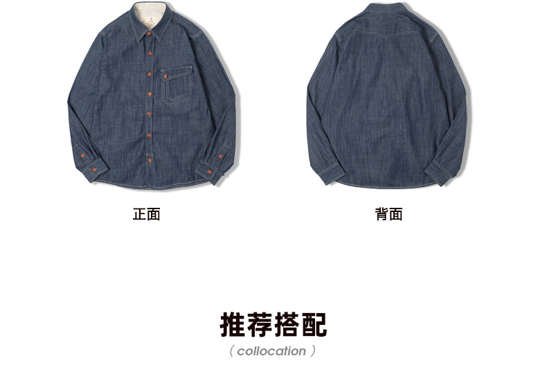 工装优选 美式复古长袖西部牛仔丹宁衬衫外穿咔叽硬汉衬衣男春季薄