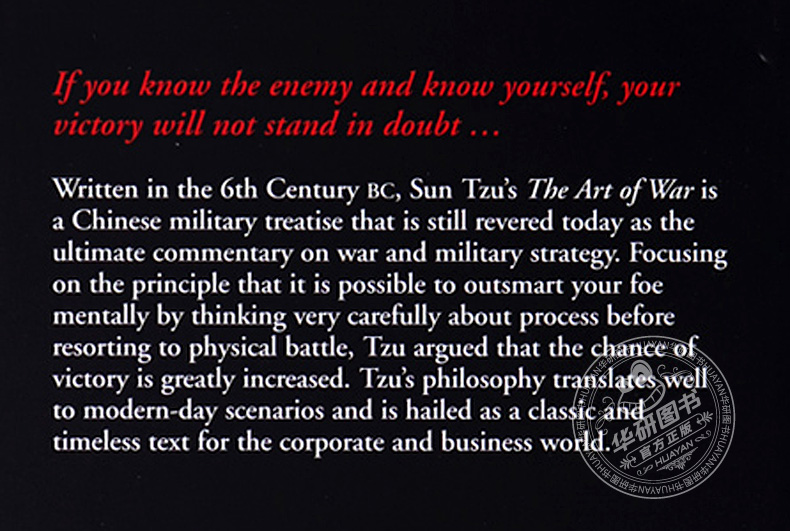 Written in the 6th century BC, Sun Tzu’sThe Art of War is a Chinese military treatise that is still revered today as the ultimate commentary on war and military strategy. Focusing on the principle thatit is possible to outsmartyour foe mentally by thinking very carefully aboutprocess before resorting to physical battle, Tzuargued that the chance of victory is greatly increased.Tzu’s philosophy translates well to modern-day scenarios and is hailed as a classic and timeless text for the corporate and business world.