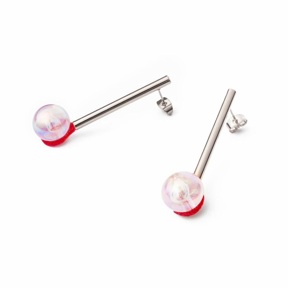 北京仓|La môme bijou-Bulles Tube-银色 耳环(粉色)[法国设计师]