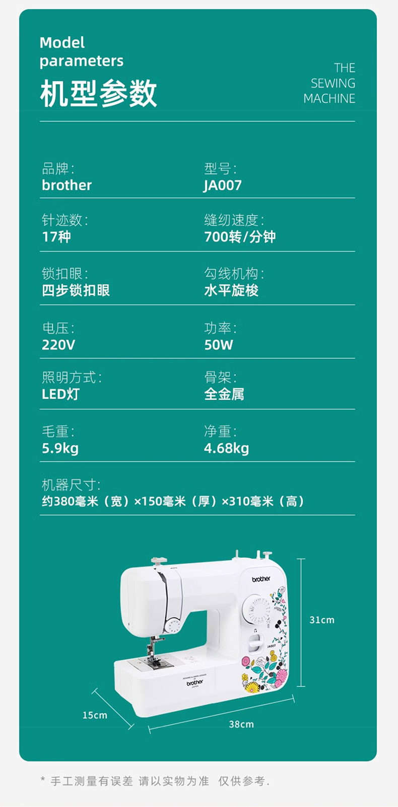 【兄弟缝纫机】brother兄弟缝纫机JA007家用电动小型锁边吃厚台