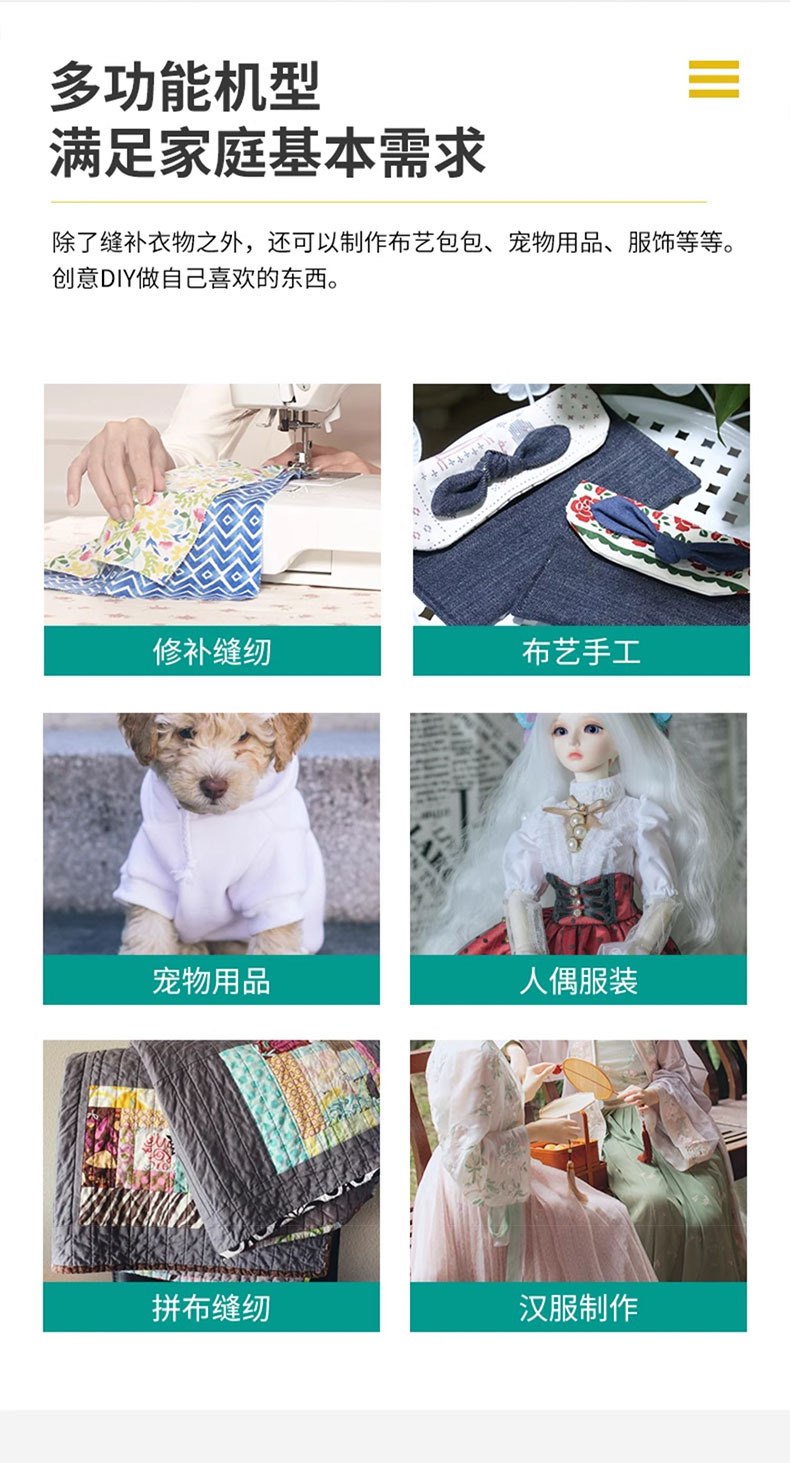 - 授权了兄弟,胜家,飞鹿,优可美等知名缝纫机品牌的移动端商城。缝纫之家一站式服务让您享受完美的购物与生活体验。