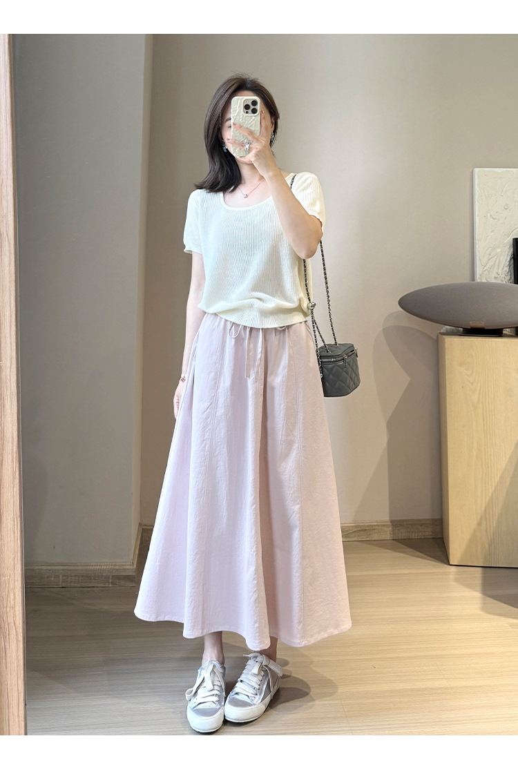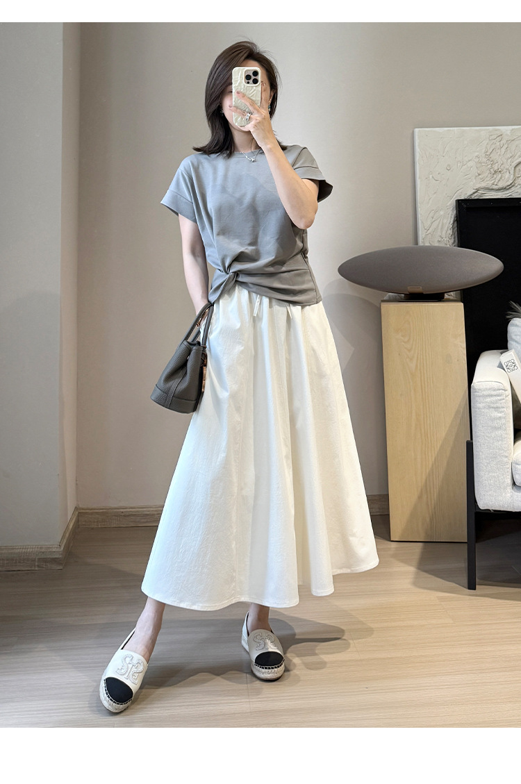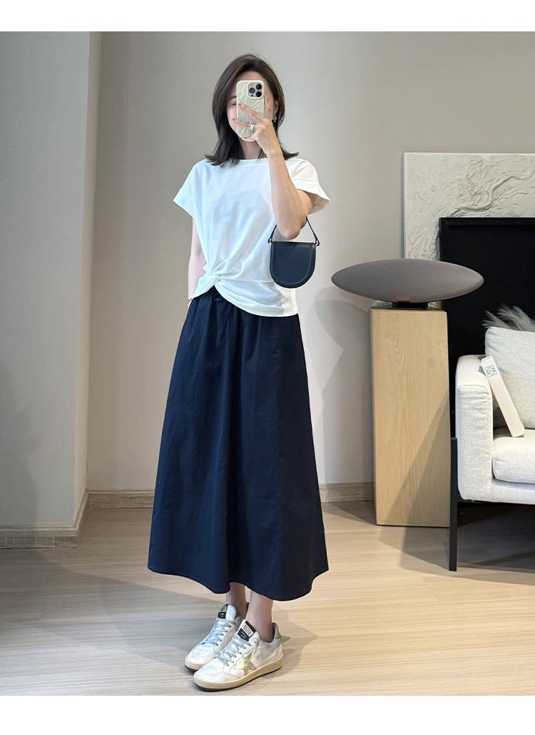 艺术气质长裙!2025抗皱钛金棉八片裁剪小A型夏季遮肉半身裙!
