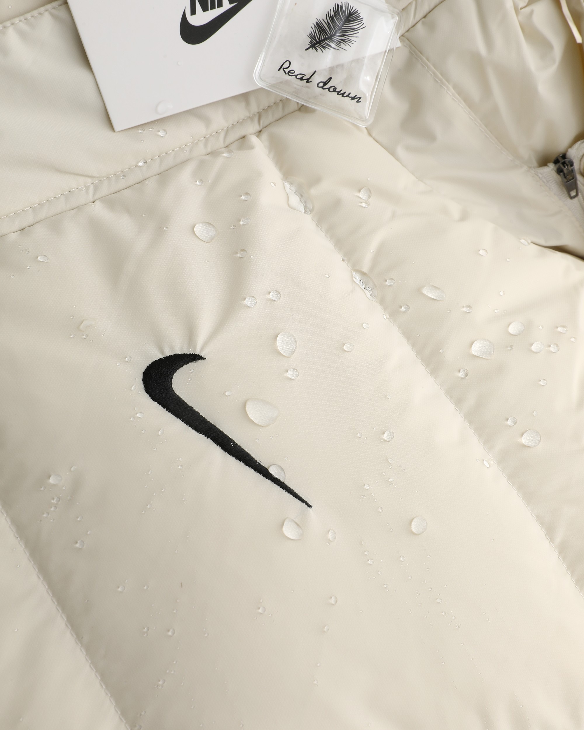 连帽纯色羽绒服夹克,男女款防风拒水羽绒连帽夹克 温暖舒适助你抵御严寒。Storm-FIT 技术具备出众的防护性能,帮助在恶劣天气条件下保持舒适。休闲剪裁营造充裕空间,便于在严寒天气内搭其他单品 不惧寒冷 外层梭织面料能防风拒水,助你在湿冷天气保持干爽温暖。御寒保暖 保暖填充物质感轻盈,令你在寒冷天气中畅享温暖感受。 轻松穿脱 采用休闲剪裁,打造运动风范,便于叠搭。?材料:防风拒水梭织面料,添加填充物,提升保暖性。?结构:白鸭绒羽绒填充物,结合防风拒水的外层梭织面料。?口袋:侧边拉链口袋。?装饰:袖口和下摆采用轻薄弹性包边设计,风帽配有松紧调节扣。?其他特色:双向拉链,可供随心变换风格和调节包覆效果