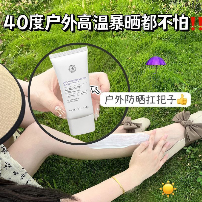 【户外防嗮扛把子!SPF50+防晒霜】妆前隔离防晒二合一,高倍防光不怕晒,持效防晒,减少肌肤与光线直接接触,隔离底妆,阳窝粉尘紫光,平价好用隔离防晒霜L