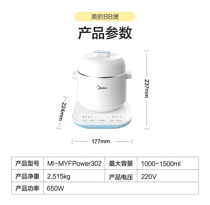 【料理机】。美的婴儿辅食机全自动宝宝辅食锅电饭煲BB煲儿童料理机婴儿辅食