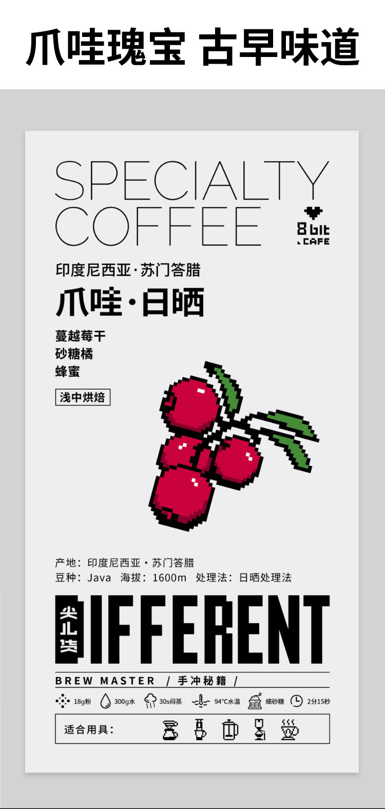 捌比特 印尼苏门答腊爪哇 Java浅中烘焙手冲精品日晒咖啡豆 100g