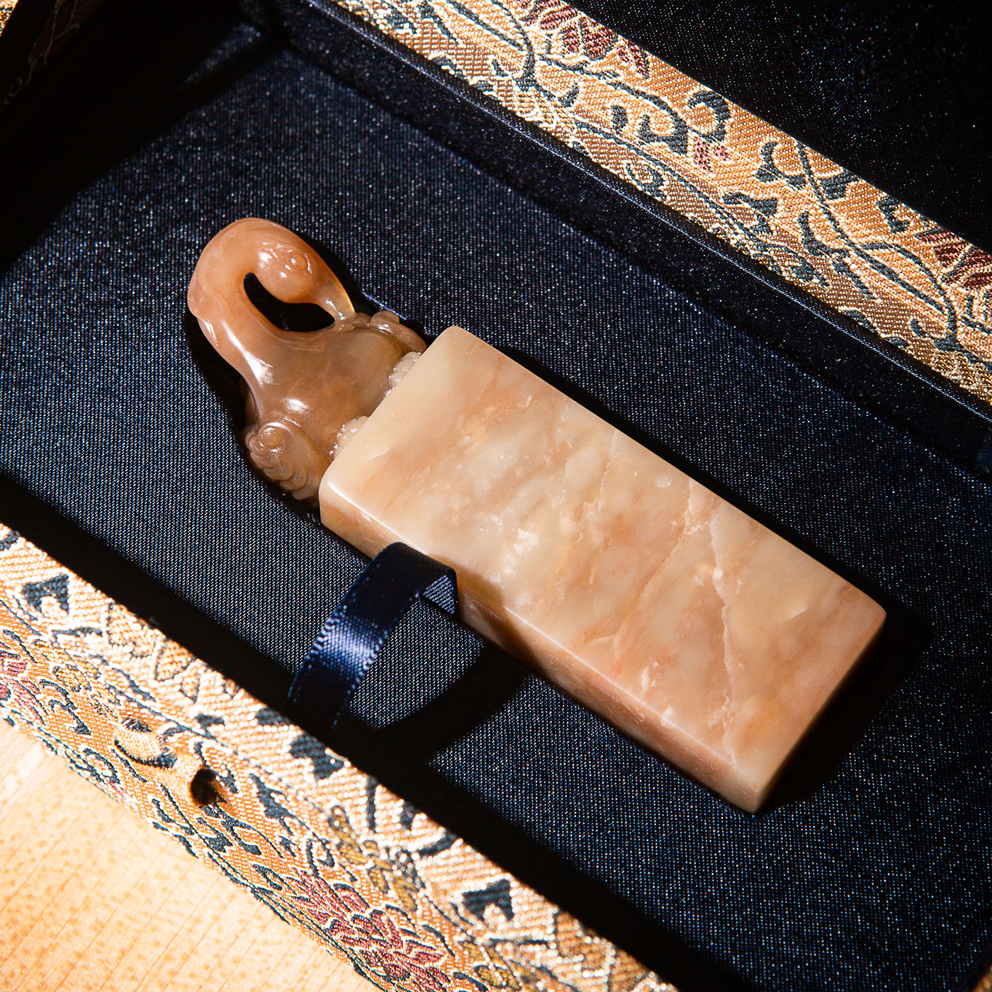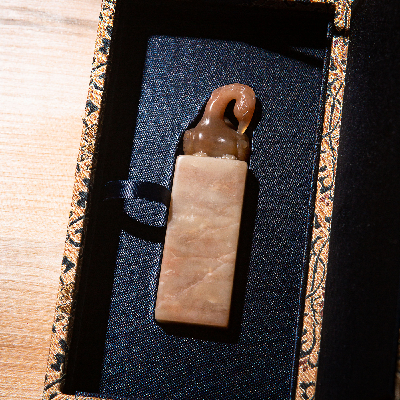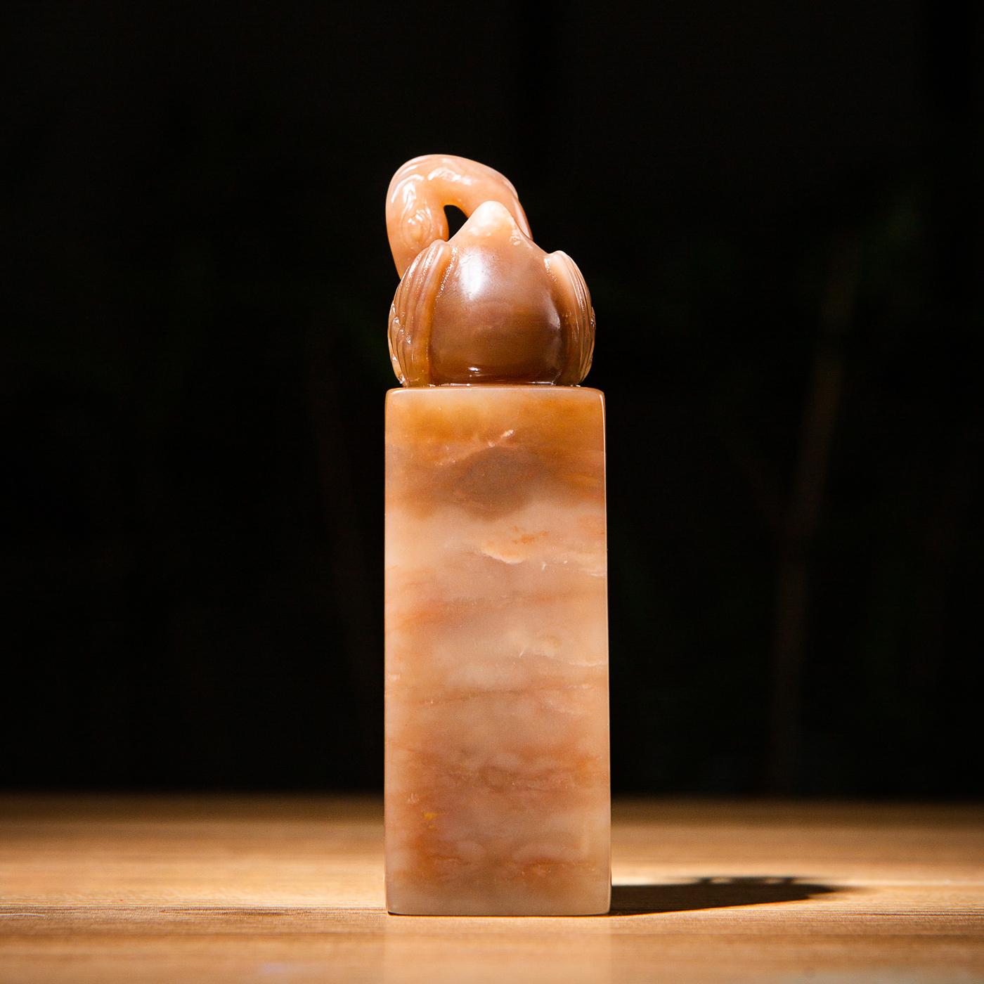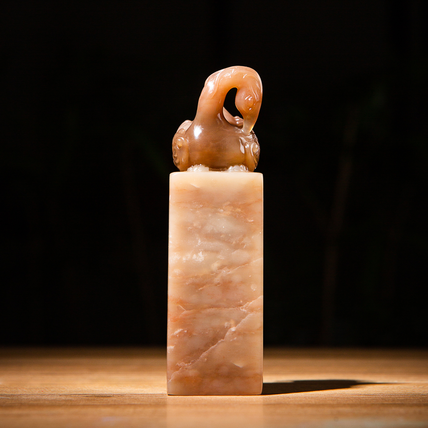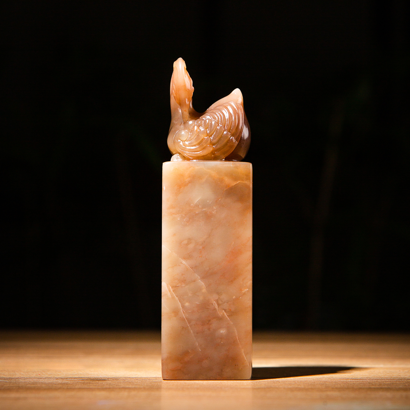 寿山石老料雕“神雀”方章,选料为存放几十年之老料,料质极佳。其雕工精细,题材刻画生动,极具艺术效果和实用性。