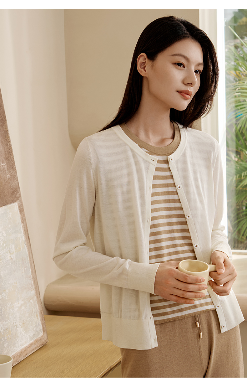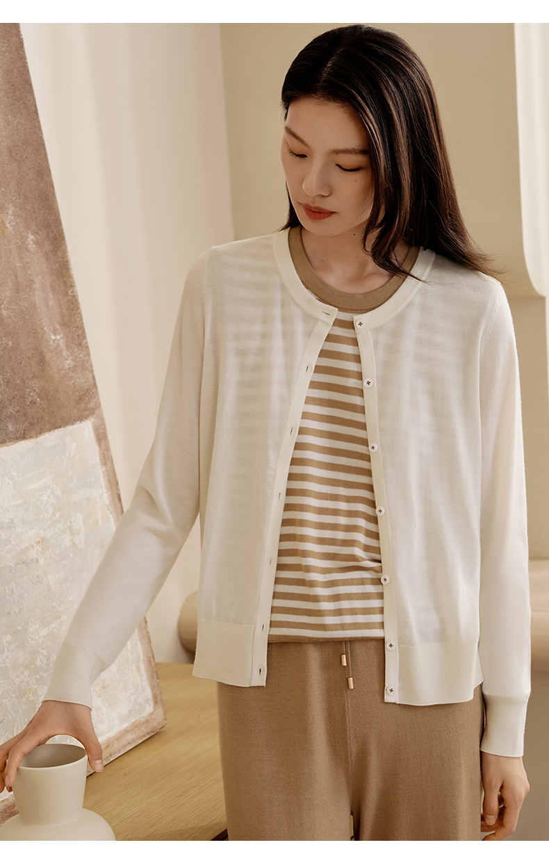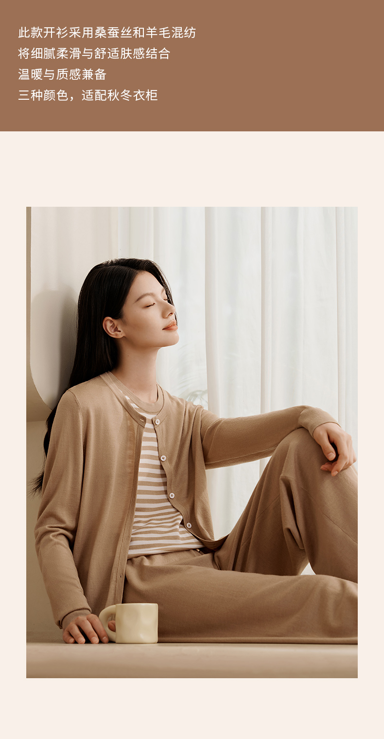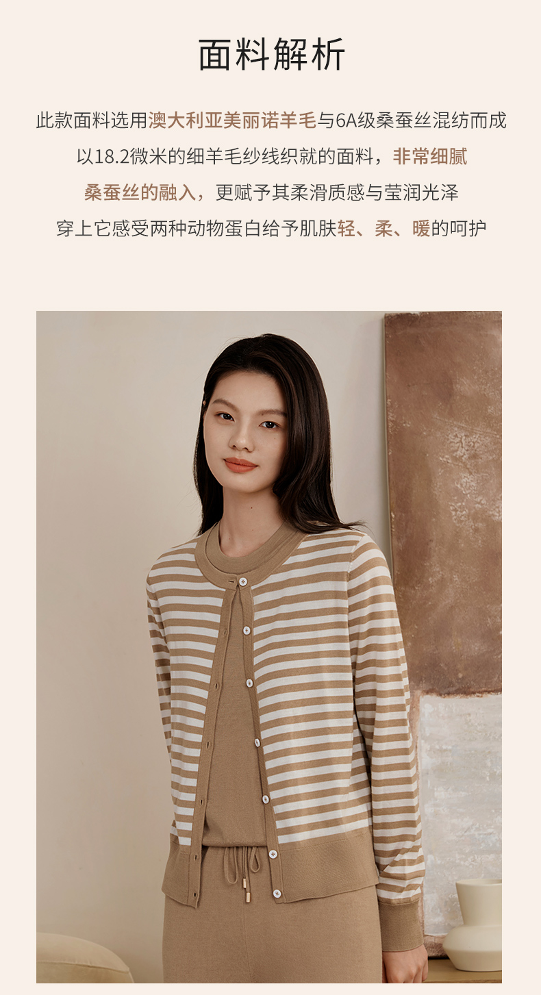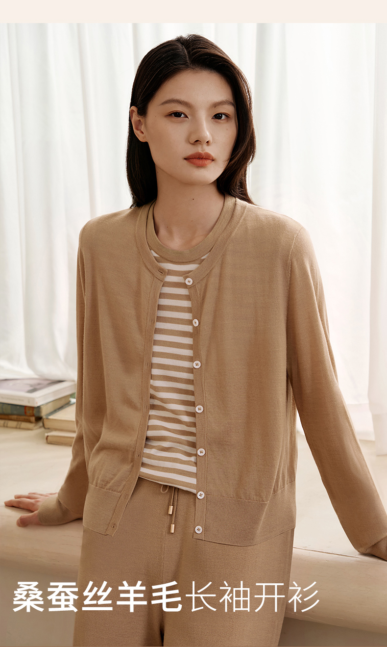 金三塔开衫女春秋真丝桑蚕丝羊毛圆领外披搭配长袖开衫 YZFFC703