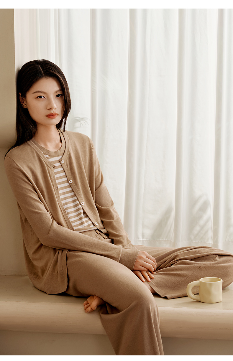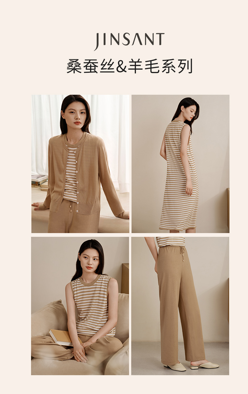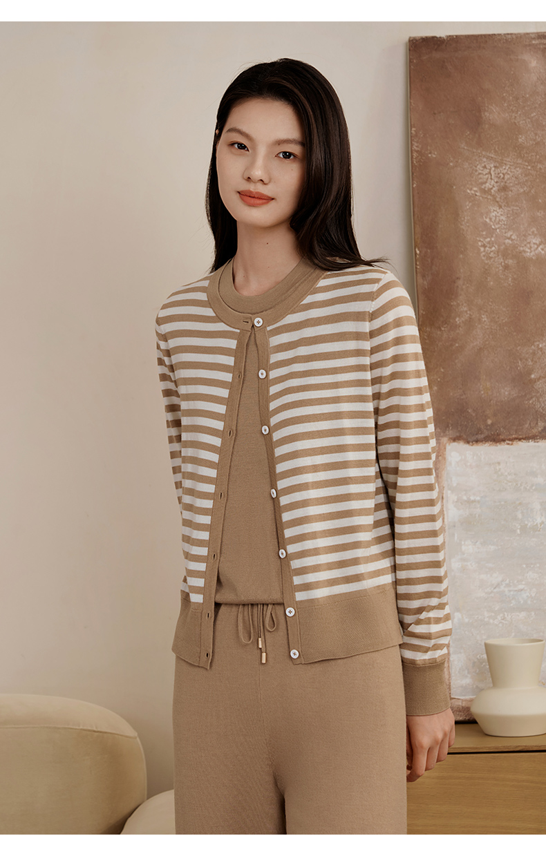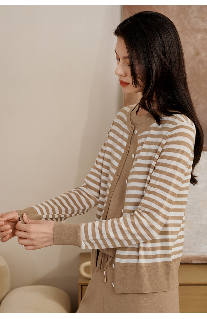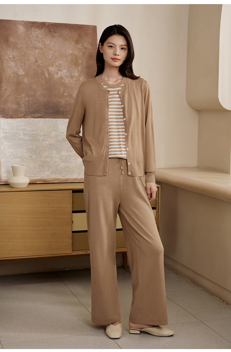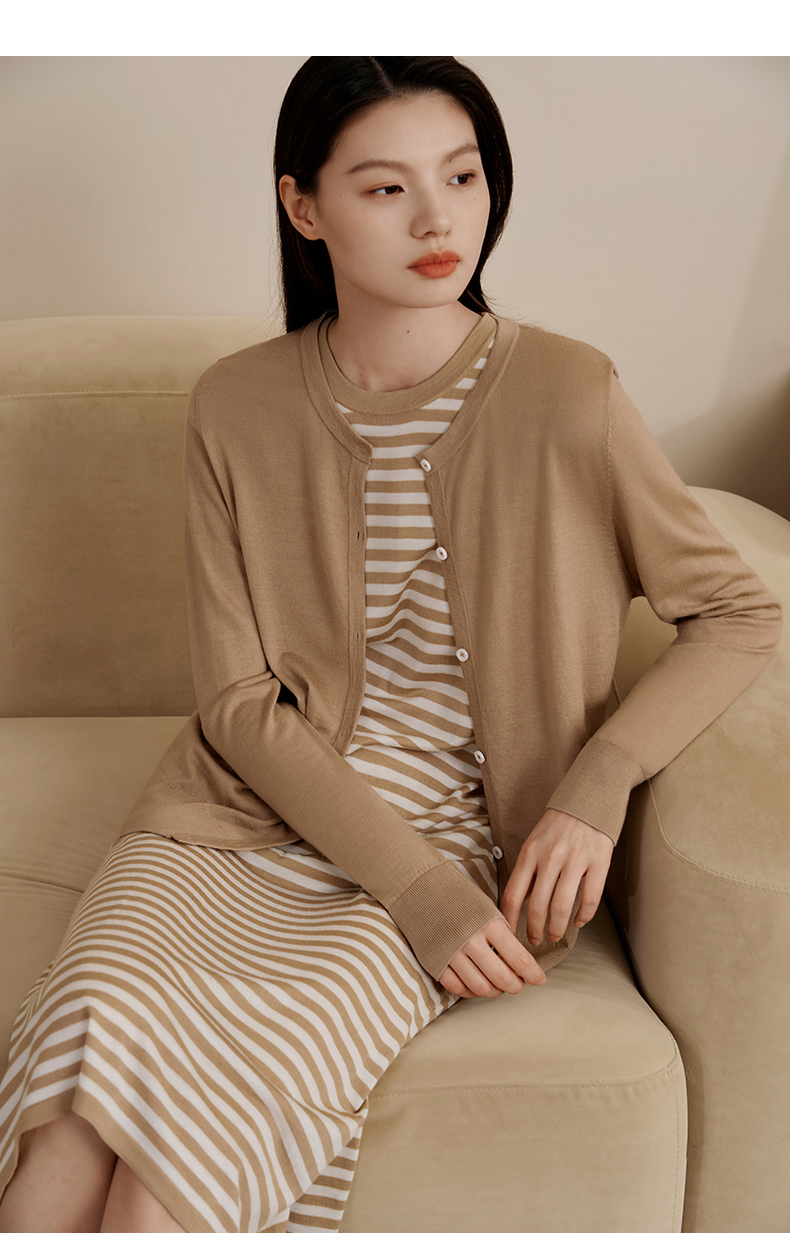金三塔开衫女春秋真丝桑蚕丝羊毛圆领外披搭配长袖开衫 YZFFC703