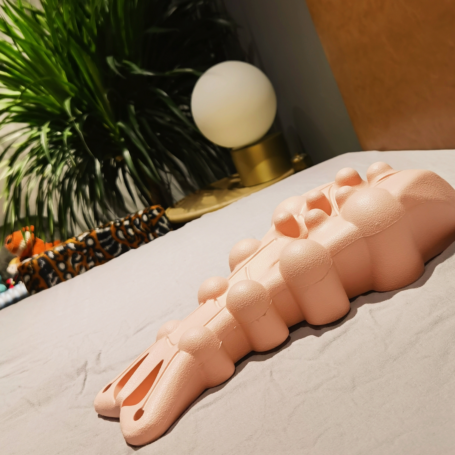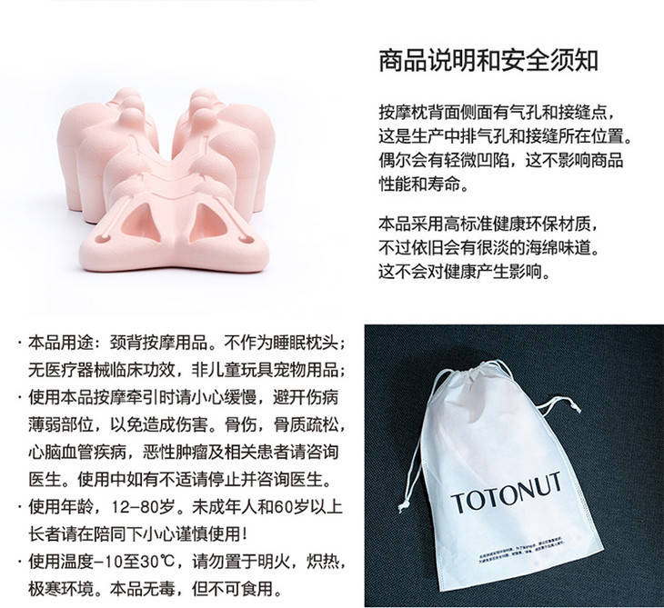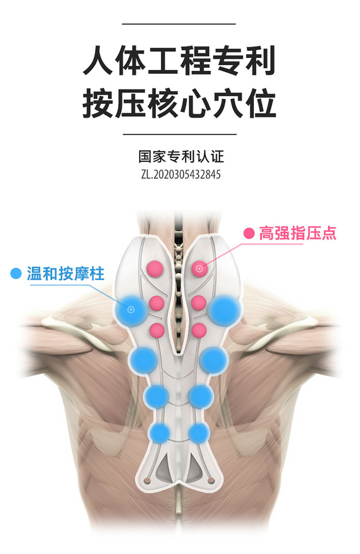 totonut小龙虾颈椎按摩器是由哥伦比亚大学团队研发的,根据人体工学设计,能够很好地贴合颈部、背部甚至是腰部。小龙虾有四大分区,包括:1-3节颈椎指压区、4-7节颈椎指压区、斜方肌/小菱形肌/肩胛提肌按摩区和下斜方肌/背阔肌/肩胛骨内缘按摩区,除了能贴合整个颈椎外,同时通过6个高强度指压点+8个温和按摩柱放松背部肌肉。除了按摩,小龙虾15°的设计对颈椎还有温和的牵引作用,平躺在小龙虾上还有开背拉伸和按摩腰部的作用。