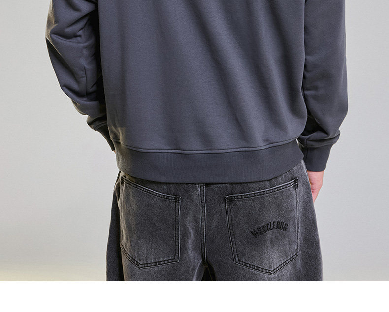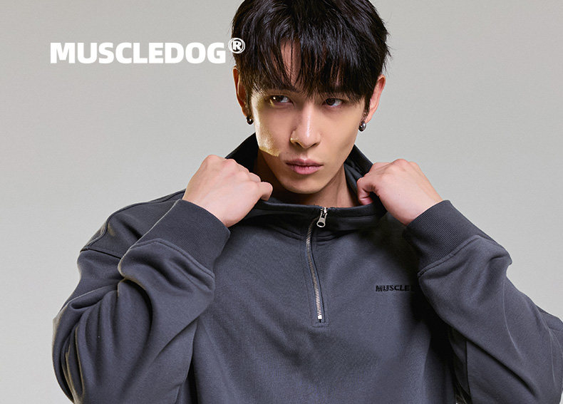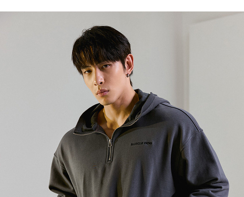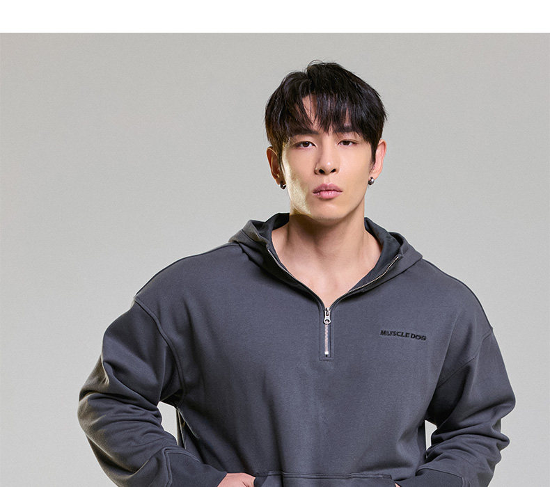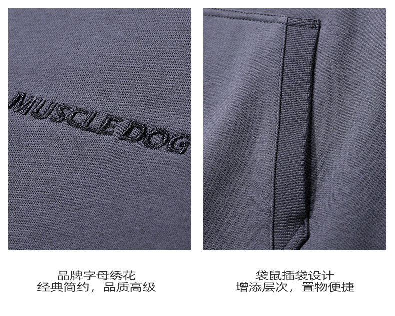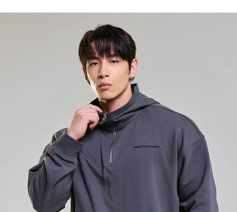 肌肉狗半拉链连帽卫衣男春秋时尚字母绣花宽松休闲训练健身套头衫