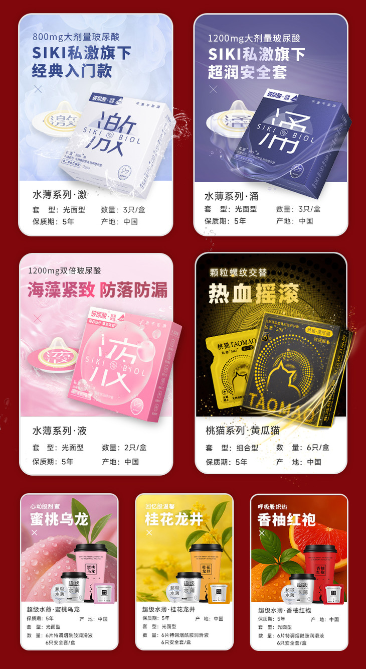 SIKI私激新品超级水薄奶茶杯 玻尿酸安全套 每杯含6只安全套+6片特调烟酰胺润滑液